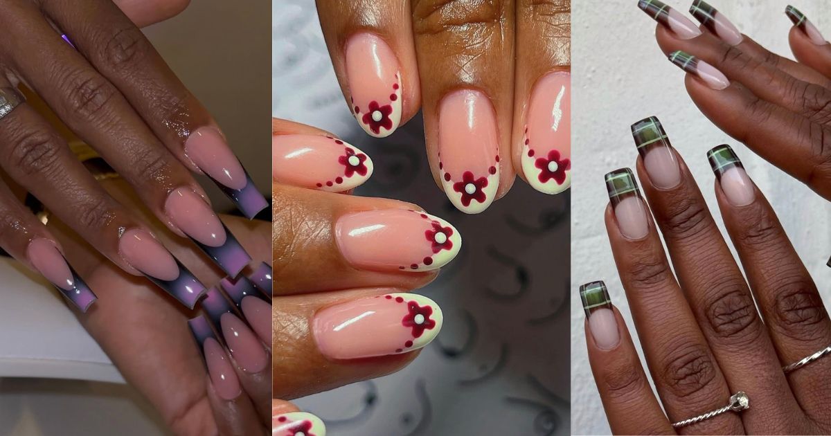 Las uñas francesas nunca pasan de moda, pero en piel morena adquieren un encanto especial. Los tonos nude, blancos, dorados o con toques de color contrastan de forma elegante con los matices cálidos de la piel, creando un efecto cómodo y luminoso. Desde el clásico francés minimalista hasta versiones modernas con diseños gráficos, flores o textura metálica, hay una opción para cada estilo.