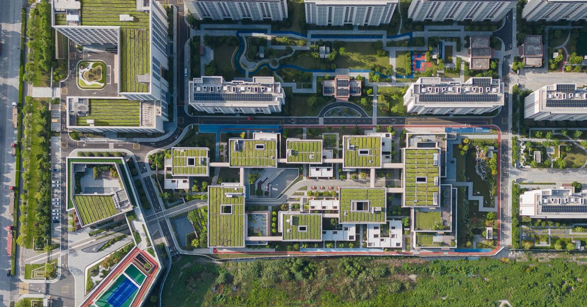 Ubicado en la ciudad de Fengcheng, distrito de Fengxian, aproximadamente a 30 kilómetros del centro Llevar a la fuerzaJoyful Community de GN Architects reinventa la tipología de jubilación viviendo en Porcelana. Ocupando 120.000 m² en un antiguo emplazamiento industrial, el proyecto transforma el área en un centro urbano de uso mixto que integra viviendas, médicoprogramas culturales y recreativos. En lugar de crear una comunidad de personas mayores aislada, el diseño posiciona el desarrollo como un entorno inclusivo para múltiples generaciones, fomentando la interacción entre los residentes y el vecindario circundante.