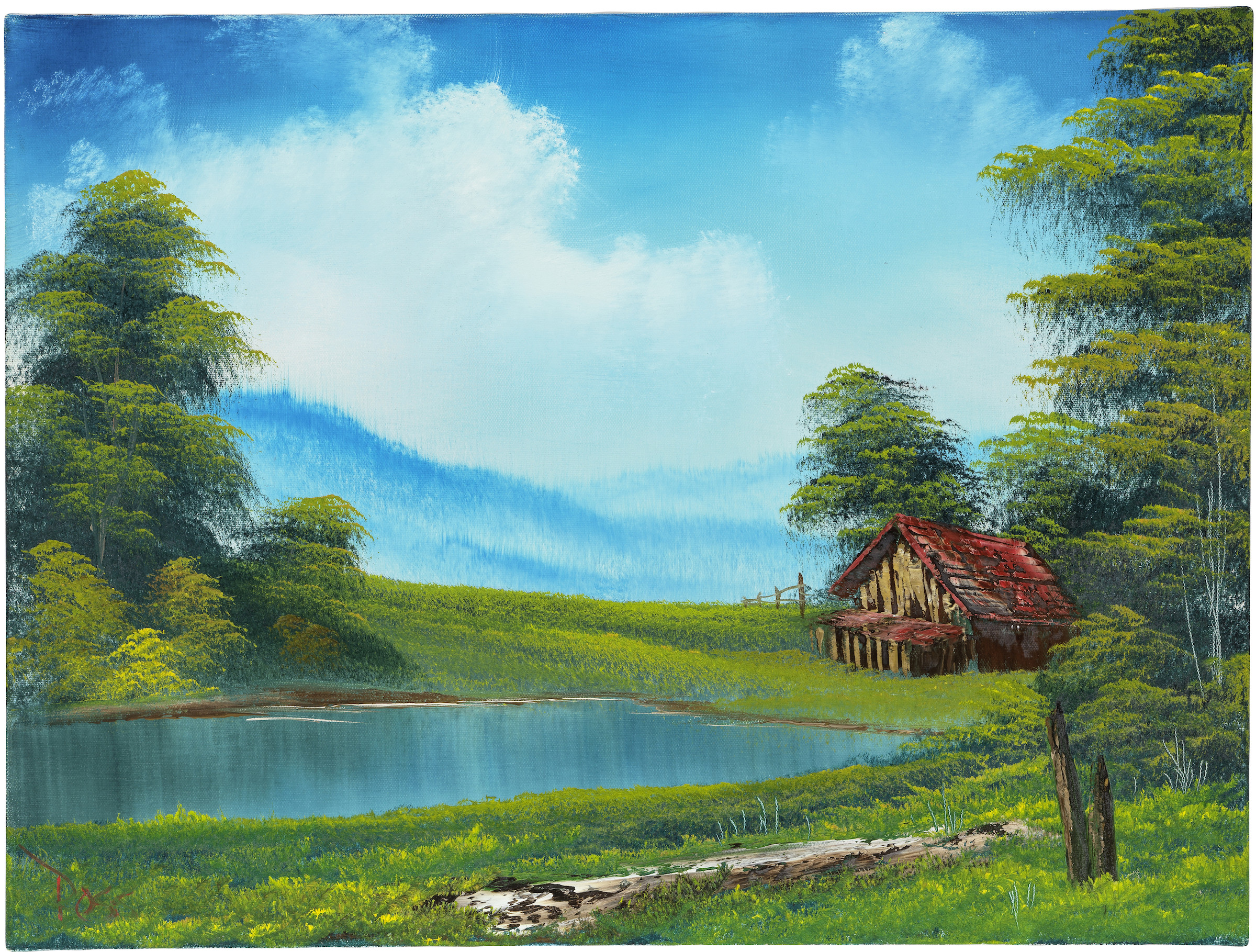 «Eso es lo que me gusta de la pintura: te da libertad», reflexionó el famoso artista Bob Ross en un episodio de 1994 de su programa de televisión instructivo La alegría de pintar. «Puedes crear cualquier ilusión que quieras». Usando su característica técnica de óleo húmedo sobre húmedo, Ross aplicó suavemente una mezcla de pintura amarilla y verde brillante sobre un lienzo vertical, creando colinas cubiertas de hierba que se fusionaron en un paisaje de árboles frondosos, montañas vaporosas, un estanque en tonos de joyas y un granero con techo rojo.
