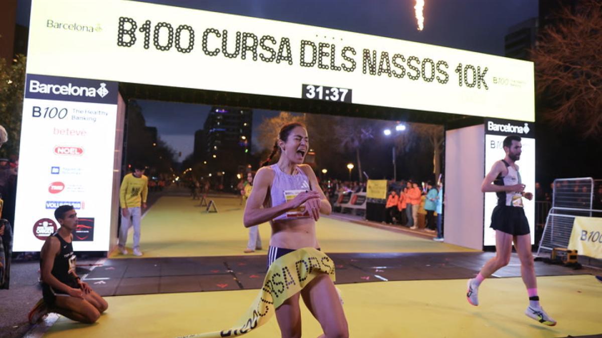 Paraca Marta Galimany esta fue su victoria número siete en la Cursa dels Nassos y la más especial de todas. La tarraconense de 40 años venció con 31'36, nuevo récord de Cataluña. “Estoy que no me lo creo. Venía con muchas ganas y con la idea de arriesgar, pero no me esperaba que me saliera tan bien”, dijo Galimany justo después de cruzar la meta. La maratoniana de Valls, que fue madre en 2024, está completando los mejores registros de su vida, algo totalmente inesperado para ella. “Me sorprendo a mí misma día a día por ir superando mis marcas pese a descansar poco y mal con la maternidad”aseguró con gran alegría. La segunda plaza fue para Douae Ouboukir con 32'40 y la tercera para Carla Domínguez -de 22 años- con 33'45.