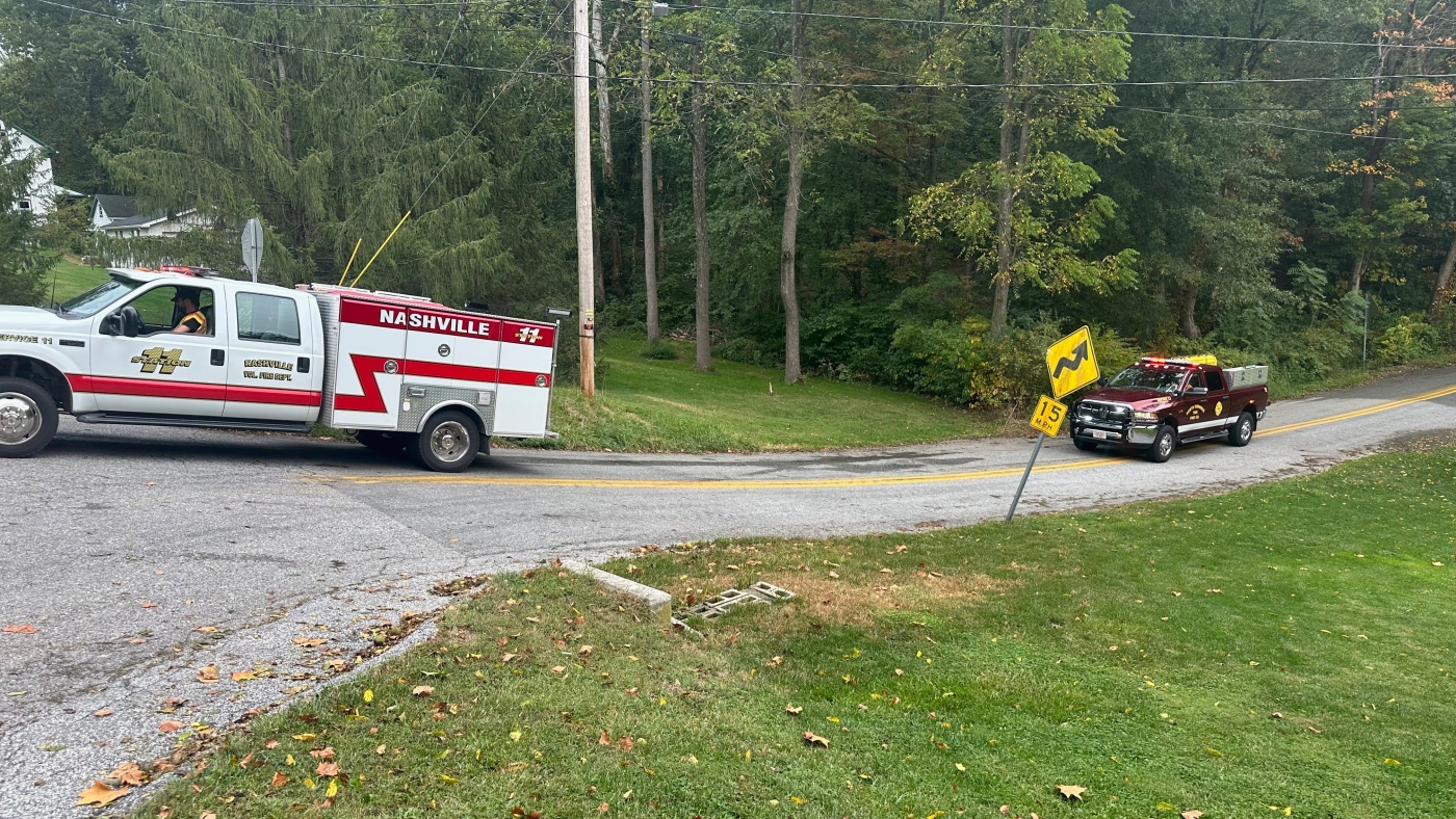 La respuesta médica se desarrolló en un camino rural en el centro-sur de Pensilvania que enrolla a través de una zona agrícola con un granero rojo y campos de granja.