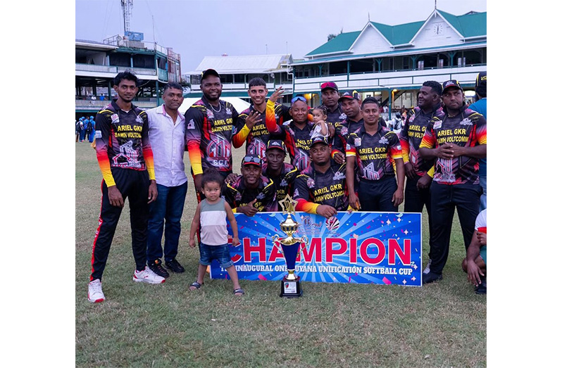 Ariel Guyana Knight Riders resistió el desafío de la lancha rápida de los archirrivales para emerger a los ganadores de la categoría abierta cuando el torneo inaugural de One Guyana Unificación de la Copa de Softbol, ​​organizado por el Georgetown Softball Cricket League (GSCL), en la conjunción con el título de stationery regal y el Centro de informática, terminó en el Georgetown Cricket Club (GCC), Bourda, Bourda.