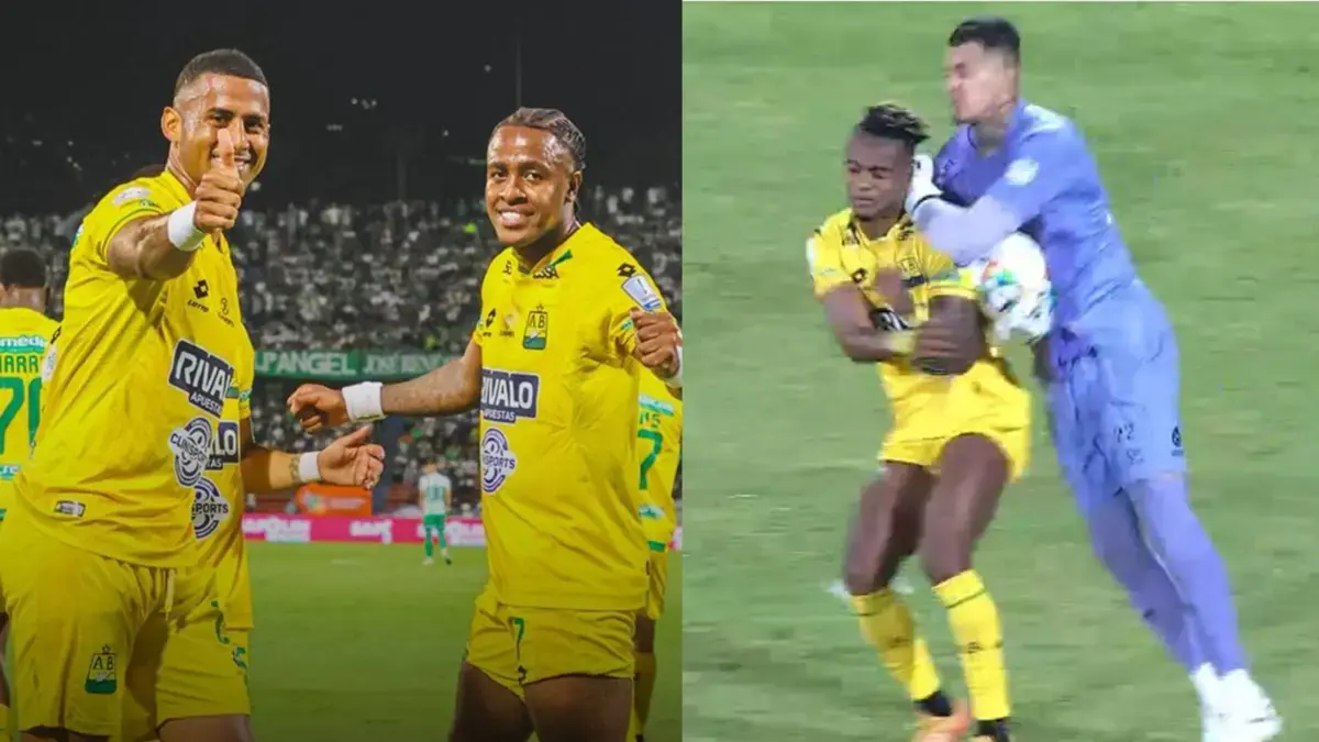 Corría el Minuto 44, Bucaramanga Ejecutó un tiro libre de costado y el Balón le quedó en las manos al arquero, quien intentó desesparo ráspido para cear un contraataque, pero jugada le salió mal. El Uruguayo, Con la Pelota en Las Manos, Estrelló A Faber Gil, Que Estaba de Frente y lo Golpeó en el Rostro.