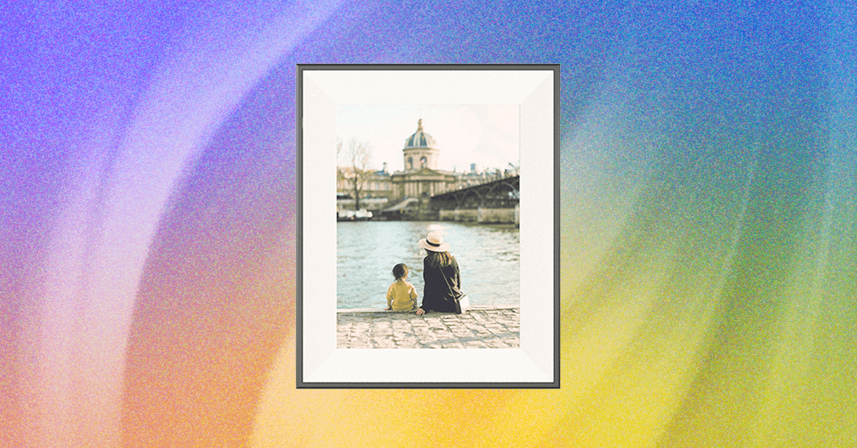 Ahora, con el diseño verdaderamente inalámbrico de Aura Ink, es posible colgarlo sin enredos de cables. La pantalla de 13 pulgadas la hace un poco más grande que la Aura Aspen de 12 pulgadas, pero más pequeña que la Walden de 15 pulgadas, y tiene un buen tamaño para colgar. El Ink viene con un pequeño kit de montaje de dos clavos y un pequeño gancho en el que encaja el marco digital, y se puede volver a soltar fácilmente para cargarlo (el puerto de carga está en el lateral si el lugar para colgarlo está cerca de un tomacorriente). Pude colgarlo en una de mis chinchetas existentes sin problemas, y el marco se mezcló fácilmente con la pared de mi galería existente.