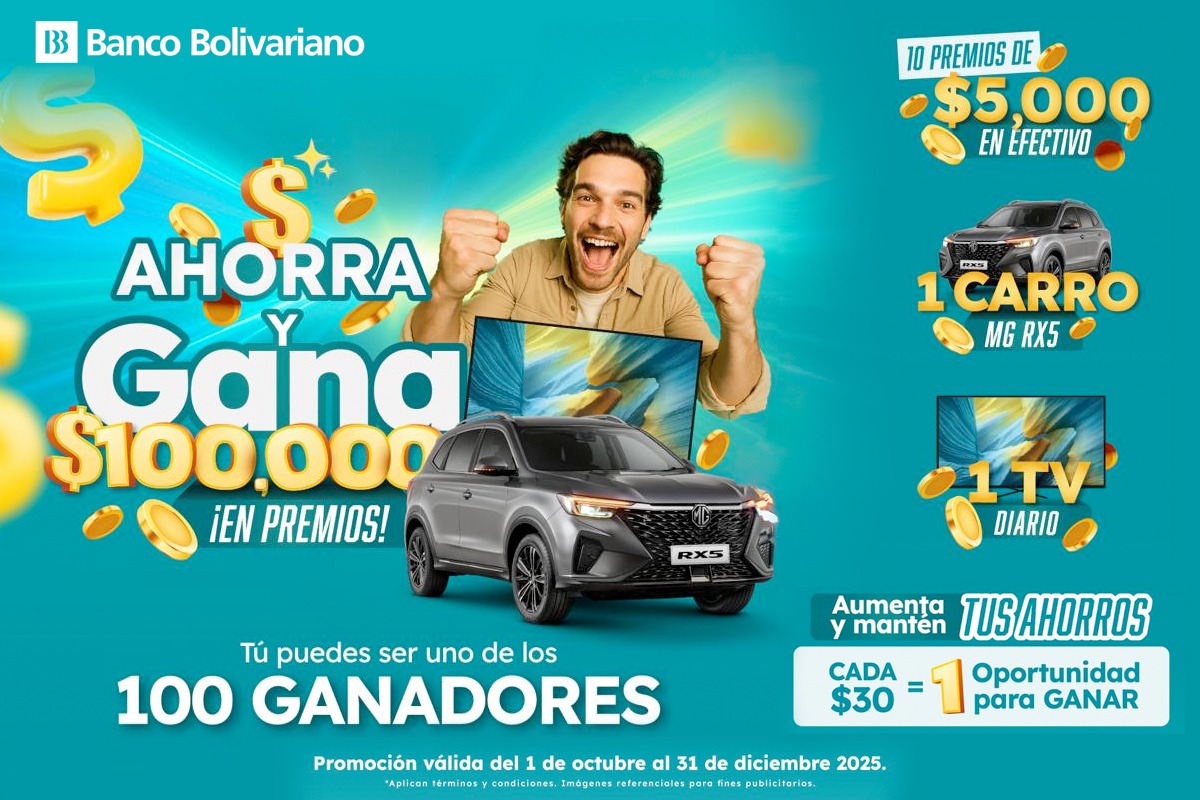 El Banco Bolivariano, comprometido con el desarrollo financiero del Ecuador, lanzó la promoción “Ahorra y Gana $100.000 en premios”, una iniciativa que impulsa la constancia y el hábito del ahorro.