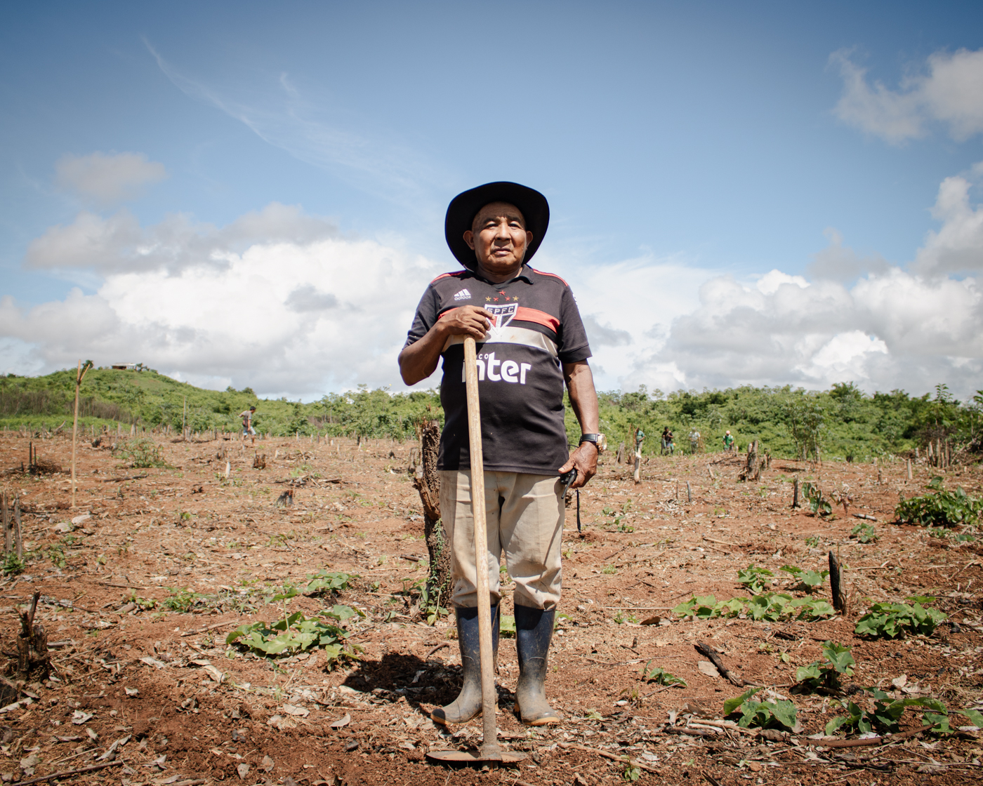 Carlos Clementino, del pueblo Macuxi, se encuentra frente a su campo, donde él y sus familiares se disponen a sembrar frijoles y maíz.