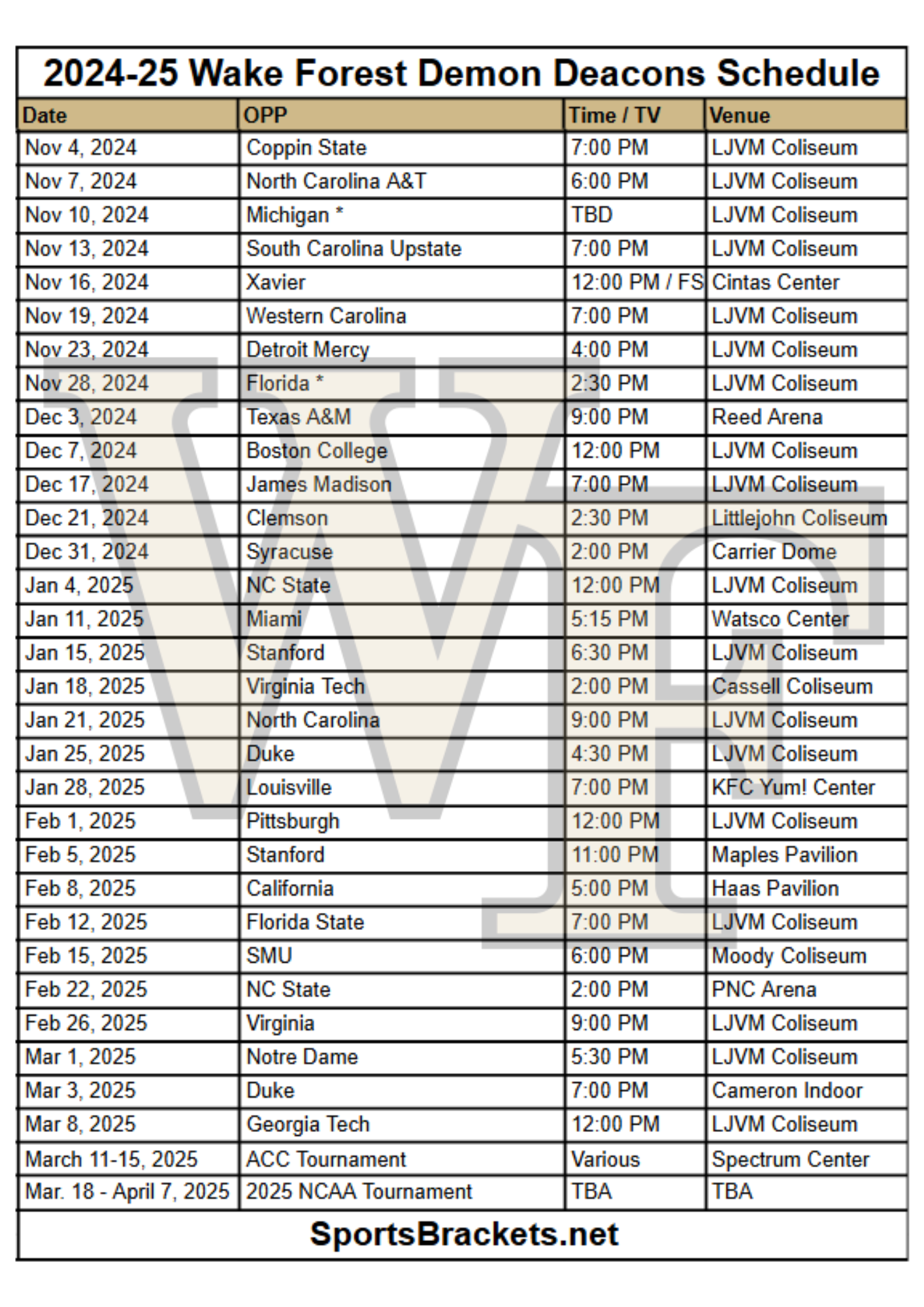 Calendario de baloncesto de los Wake Forest Demon Deacons 2024-25