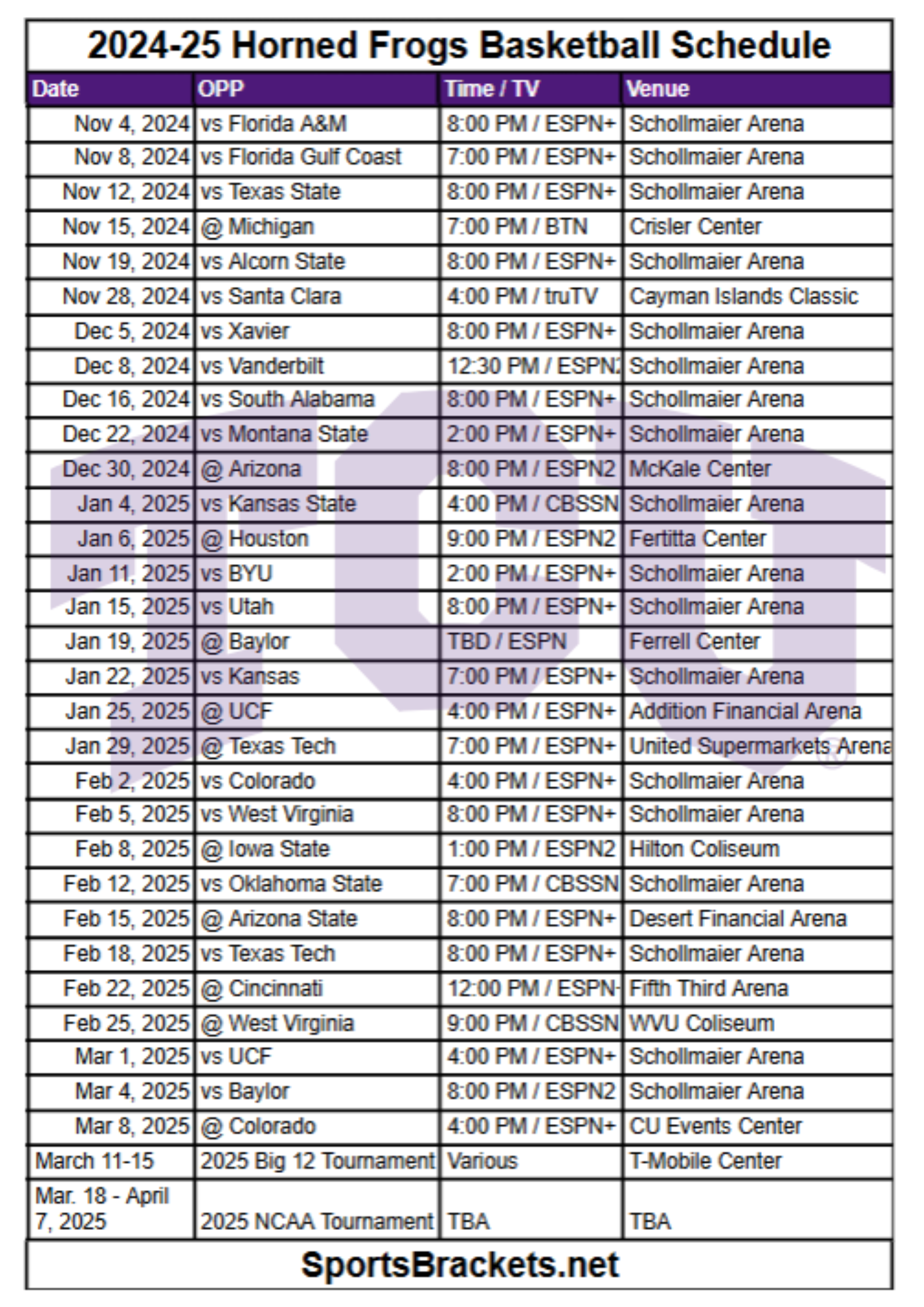 Calendario de baloncesto de TCU Horned Frogs 2024-25