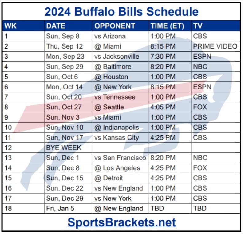 En mi experiencia, definitivamente hace que las cosas sean más fáciles de tener en formato imprimible para el año 2024. Billetes de búfalo Horario para seguir la temporada. El horario está en formato de imagen arriba y publicado en Formato PDF Aquí. El cronograma se puede descargar, compartir y publicar de forma gratuita como desees.