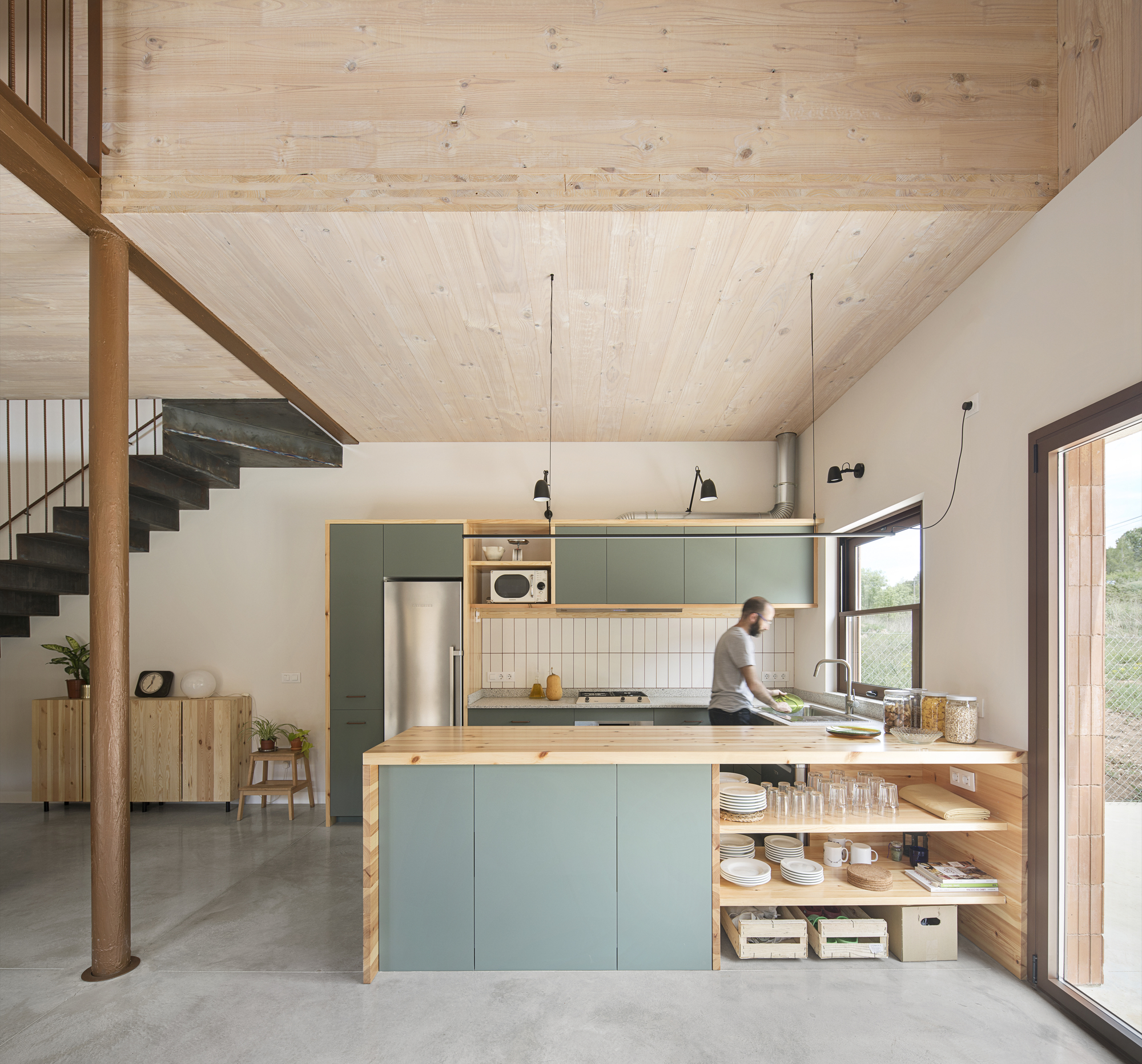 MDN House / Nook Architects + Amomicasa - Fotografía de interiores, cocina, mesa, ventanas, encimera, viga
