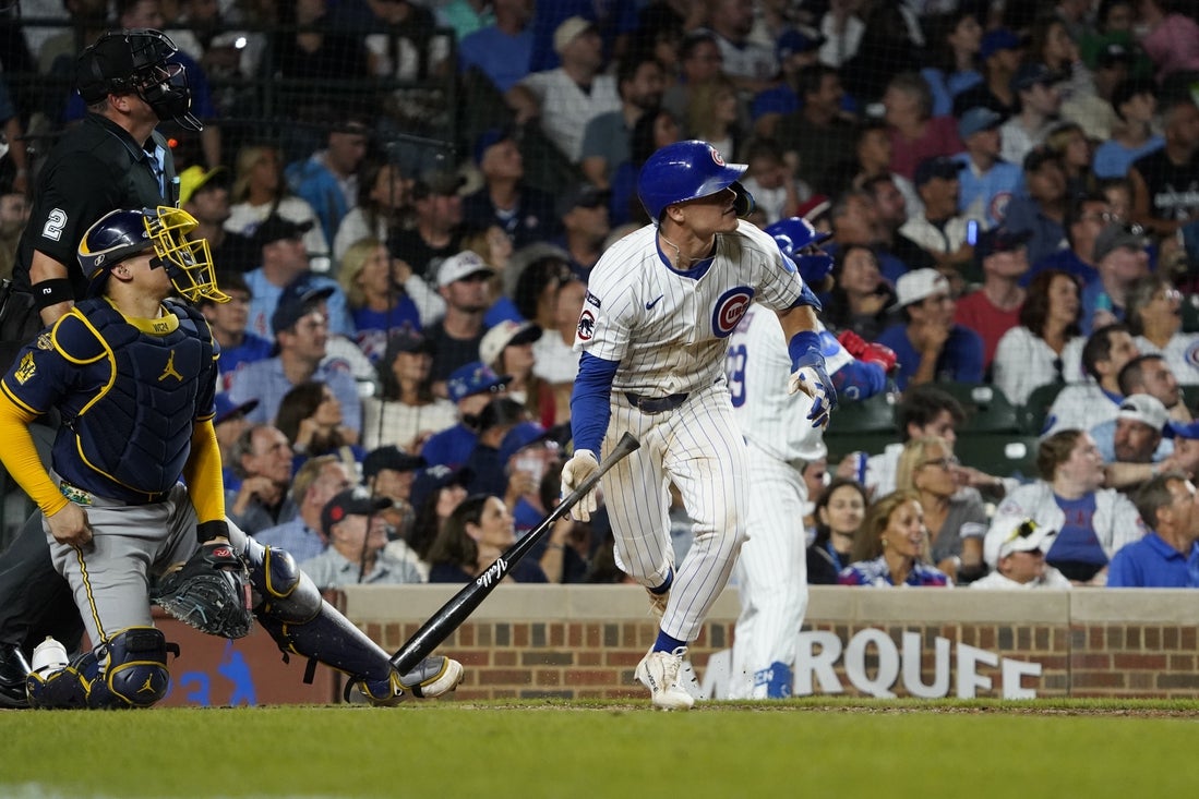 20 de agosto de 2025; Chicago, Illinois, EE. UU.; La tercera base de los Cachorros de Chicago, Matt Shaw (6), golpea un jonrón contra los Cerveceros de Milwaukee durante la octava entrada en Wrigley Field. Crédito obligatorio: David Banks-Imagn Images Cristian Yelich no comparte cualquier preocupación sobre los cerveceros de Milwaukee líderes principales de la liga que pierden tres juegos consecutivos por primera vez desde el 7-10 de mayo.