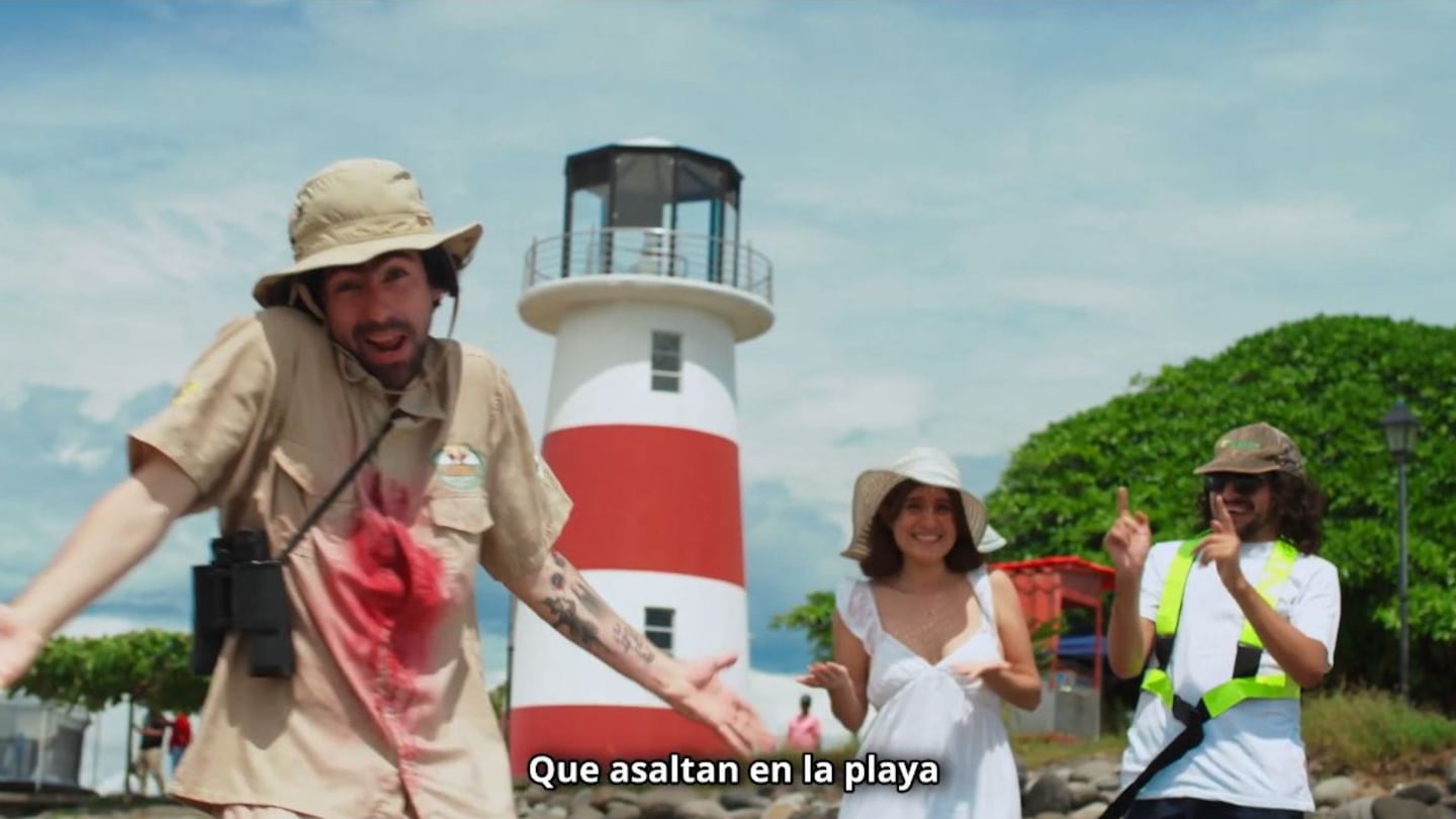«¿Aún hay monitos? ¿Dónde están las playas bonitas? Yo quiero pasar un buen rato, entonces me voy para Las Bahamas», canta Van Schie cerca del Faro de Puntarenas.