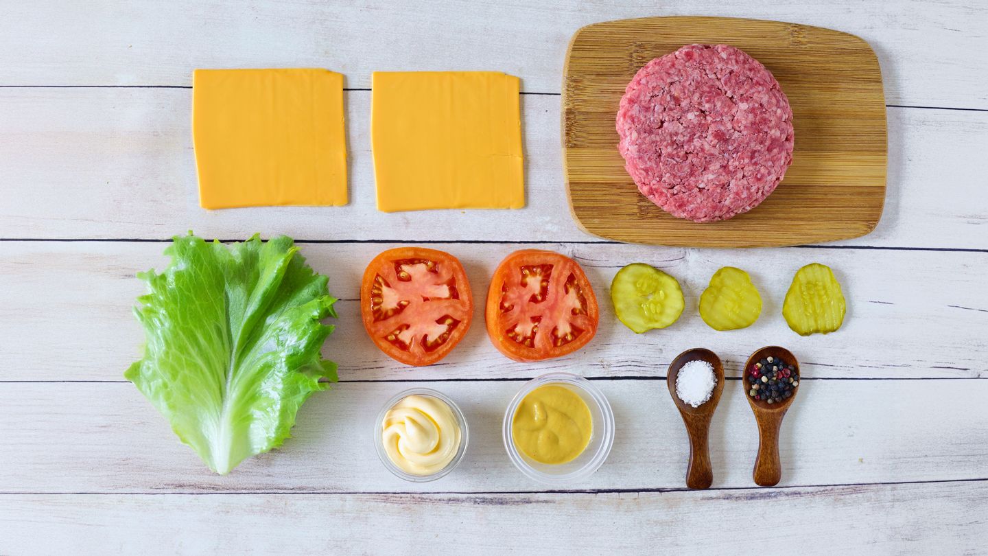 - Hamburguesa de carne molida con “pan” de lechuga y 1/2 taza de vegetales permitidos