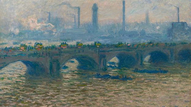 Monet fue el primero en confesar que para hacer de Londres un tema adecuado para él, se necesitaba un filtro Insta. «Sin la niebla», comentó, «Londres no sería una ciudad hermosa. Es la niebla la que le da su magnífica amplitud. Sus bloques regulares y masivos se vuelven grandiosos dentro de ese manto misterioso». El pánico total que sufrió Monet cuando descorrió las cortinas de su habitación de hotel –para descubrir la luz fresca y limpia de una mañana sin niebla– es palpable. «Al levantarme», confiesa a su esposa en una carta escrita en marzo de 1900, «me asusté al ver que no había niebla, ni siquiera un atisbo de niebla; estaba desolado y ya veía todos mis lienzos arruinados». Su alivio cuando, «poco a poco, con los fuegos encendiéndose, regresaron el humo y la niebla», sólo corrobora la sospecha de que Londres, como lugar, era casi incidental para sus propósitos. Lo que en realidad estaba recopilando no eran estudios de una ciudad sino experimentos en óptica: un tratado pionero sobre las propiedades no descubiertas de la propia luz.