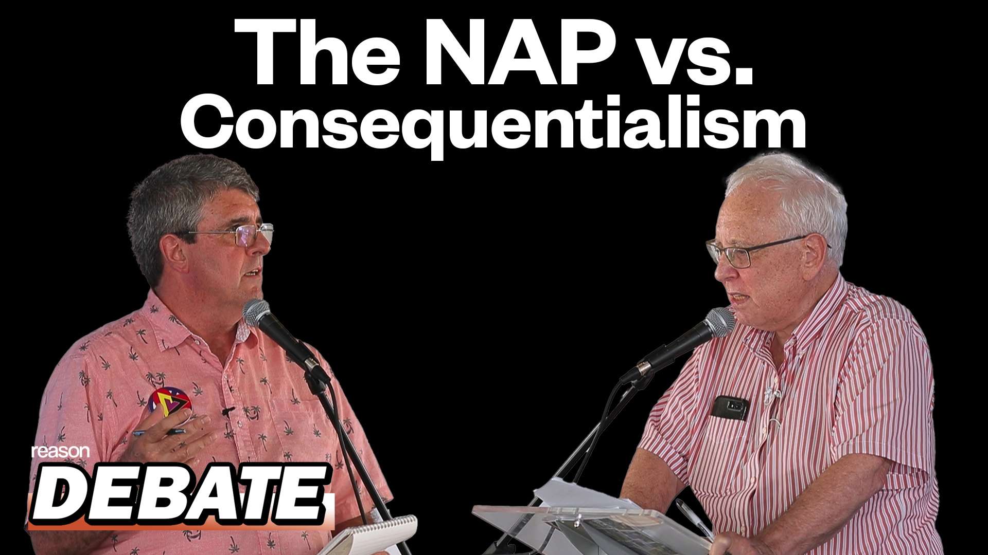 El activista del Proyecto Estado Libre Dennis Pratt y el director del Soho Forum Gene Epstein debaten la resolución: «Una mejor manera de persuadir a más personas del libertarismo es convencerlas de la ética que surge de la autopropiedad y del principio de no agresión, sin depender principalmente de argumentos consecuencialistas/utilitaristas».