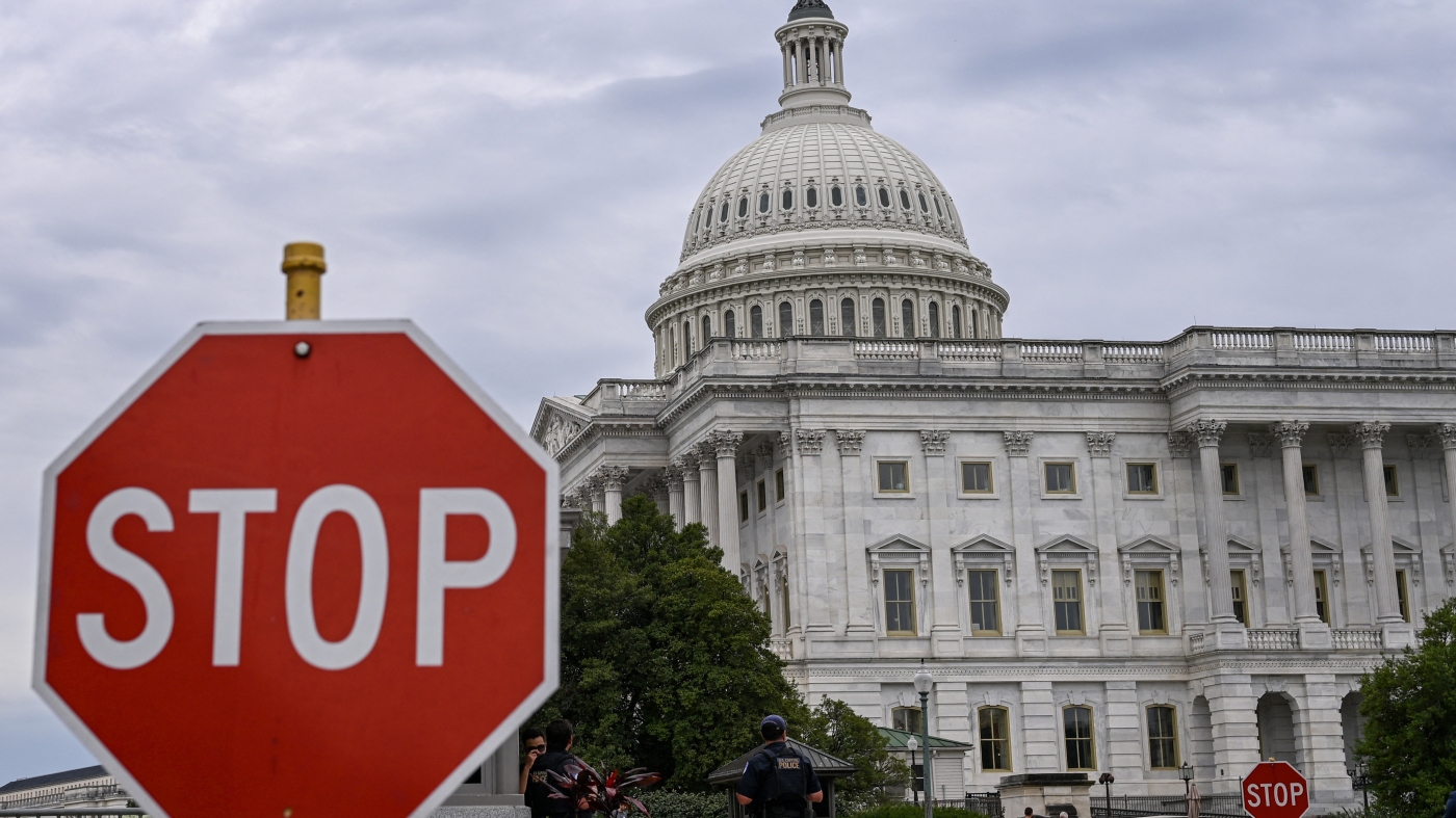 Una señal de stop se encuentra frente al Capitolio de los Estados Unidos en Washington, DC