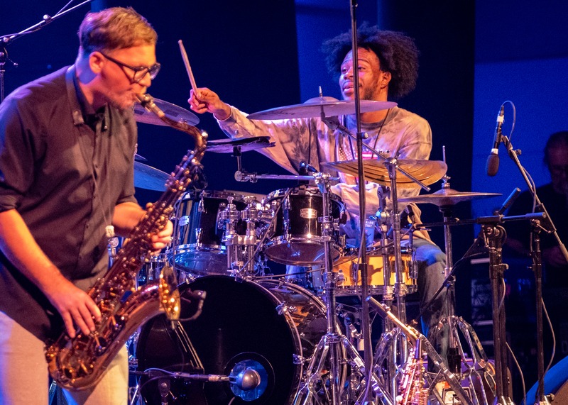 El maestro de Missouri no viene solo, le acompaña un saxofonista ucraniano Andrey Chmut atento a las directrices de BJ y sobrado en sus solos y alternando el clarinete y el saxo tenor como en la pieza “Avalabop”, al bajo Michael Palazzolo con sus dedos mágicos y una enérgica batería Jack Adkins con su pelo afro en continuo movimiento.