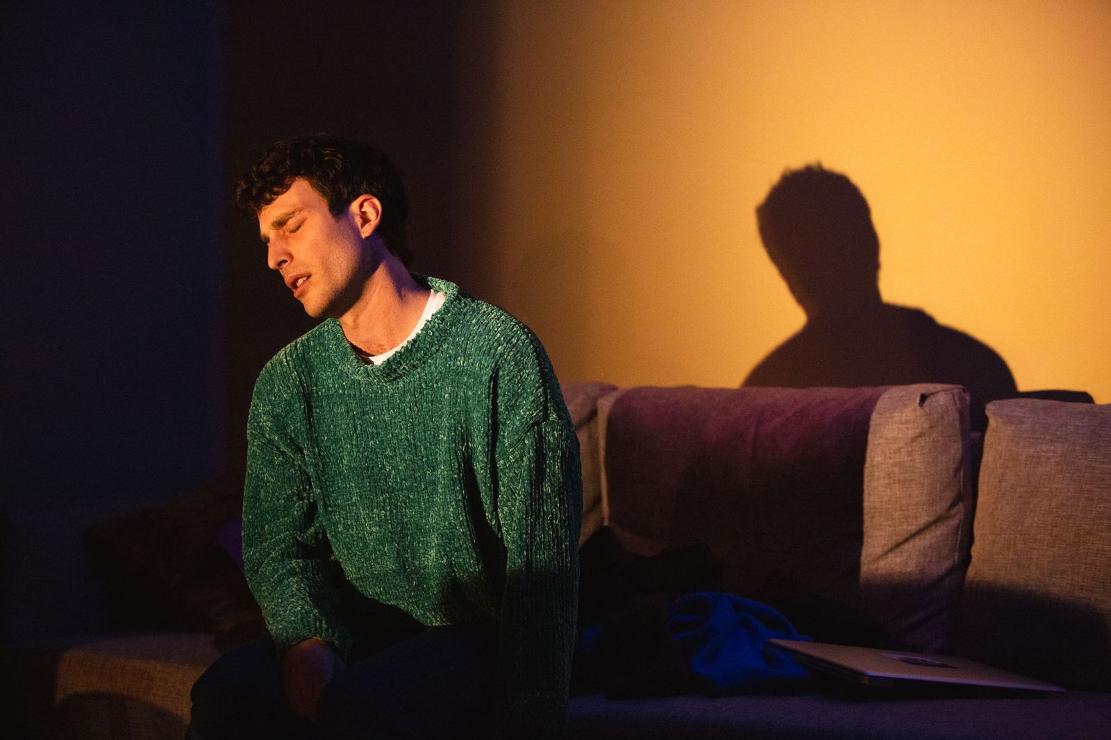 El escenario se nutre del talento del actor, desde su respiración agitada, ligera o reposada entre gritos de niños, órdenes de superiores, encuentros desafortunados, y otros de intercambio sexual nada convencional… Entre muchos otros avatares, visita una y otra vez Instagram como un templo donde recorrer escenas de la vida del muerto, también volcado en el deseo de otros hombres, al parecer con pareja estable…