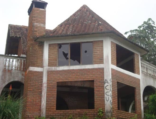 Al comienzo le decían el chalet suizo, aunque no está hecho de madera. Se construyó en 1994, por la familia Orrego Maya. Los campesinos más viejos que quedan en la vereda El Arenillo (en Palmira, Valle) recuerdan que la comunidad disfrutó allí algunos de los mejores partidos de fútbol del mundial de Francia 98. Con la llegada de los paramilitares, los propietarios salieron del país y nunca regresaron.