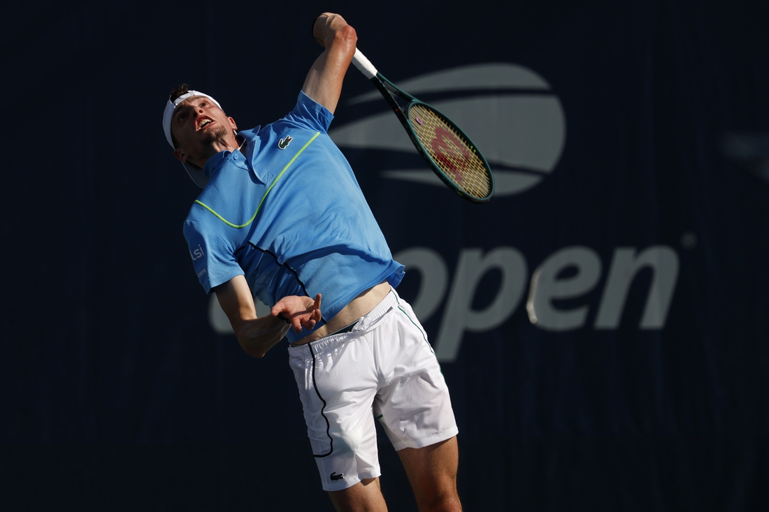 Tenis: Abierto de Estados Unidos28 de agosto de 2024; Flushing, Nueva York, EE.UU.; Ugo Humbert (FRA) sirve contra Francisco Comesana (ARG) (no en la foto) en un partido individual masculino el tercer día del torneo de tenis US Open en el USTA Billie Jean King National Tennis Center. Crédito obligatorio: Geoff Burke-Imagn Images