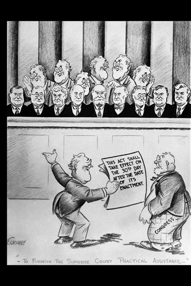 Pero Roosevelt había subestimado severamente a la oposición. Poco después de que Roosevelt anunciara el plan, los críticos advirtieron que el presidente estaba intentando avanzar con una toma de poder peligrosa que tenía ecos de los gobiernos fascistas que habían llegado al poder en Europa y Asia. Uno dibujos animados Con el título «¿Queremos una Ley Ventriloquista en la Corte Suprema?» representaban cinco jueces parados frente al tío Sam, con Roosevelt sonriendo de manera desviada detrás de ellos, ya que cantan: «¡Sí, sí, todos votamos que sí!» Los senadores y representantes fueron bombardeados con cartas de constituyentes enojados. Las ondas de radio estaban llenas de vitriolo sobre el autoritario en la Casa Blanca. El presidente de la Universidad de Princeton, HW Dodds, advirtió al Congreso: «Si el gobierno popular falla en Estados Unidos, no será por una repetición ciega de ejemplos europeos, sino por la creación de una falta de fe en la democracia y una creciente insensibilidad con la brutalidad del autoritarismo». El presidente de la Iglesia League of America planteó preocupaciones de que la libertad religiosa estaba amenazada: «en todos los países donde ha habido una centralización extrema del poder, la libertad religiosa generalmente es primero en sentir el puño por correo».