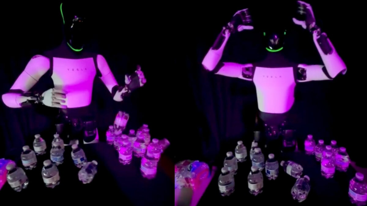 Otro vídeo del evento de Miami muestra un robot Optimus repartiendo agua. Después de que la persona que filma toma su agua, se la devuelve a Optimus. La persona quiere que Optimus establecer el agua, presumiblemente para verlo hacer más movimientos. Pero Optimus inicialmente se muestra reacio a hacerlo. No está claro por qué, pero podría tener algo que ver con el vídeo que actualmente se está volviendo viral. Parece probable que al operador le cueste ver debajo de ellos, y dejar el agua nuevamente sobre la mesa podría hacer que derriben cosas.
