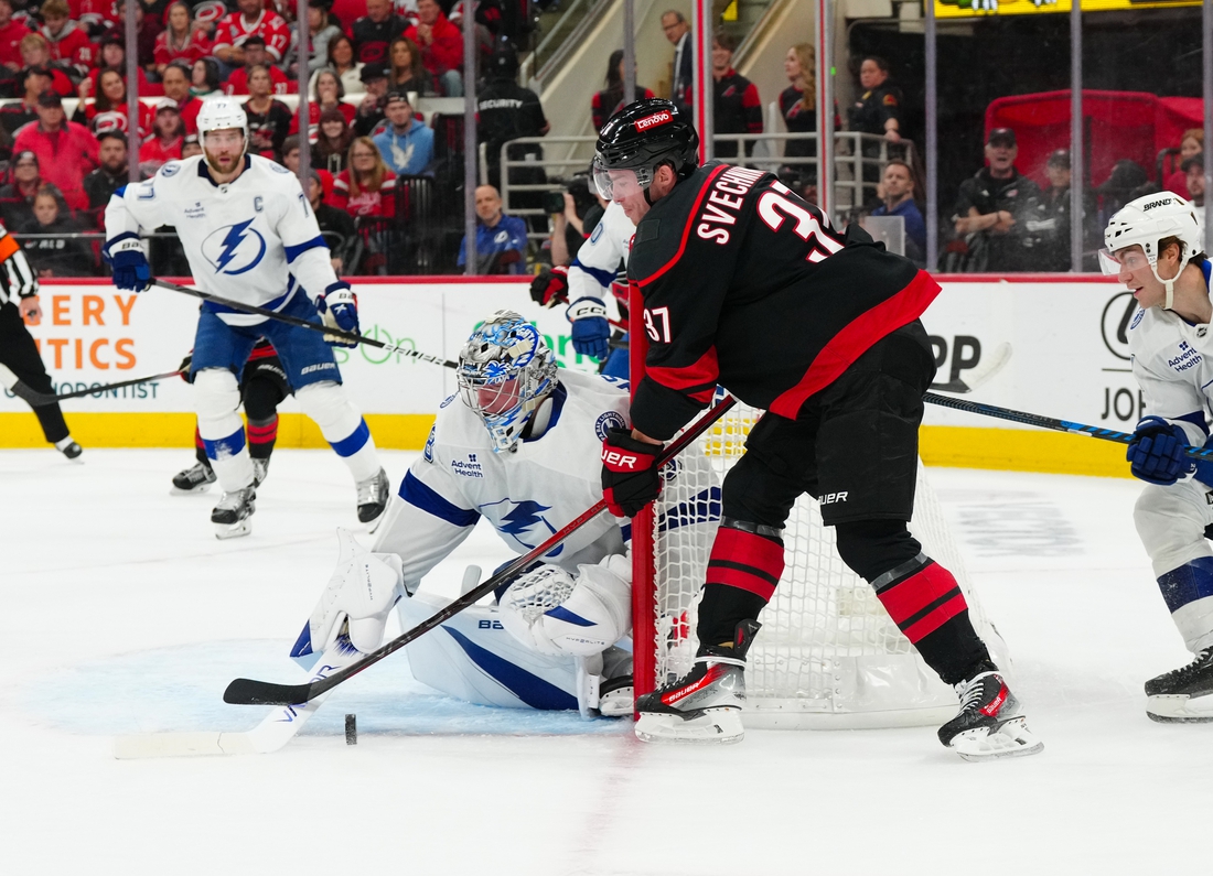 Andrei Vasilevskiy hizo 20 salvamentos para los Lightning, quienes respondieron rápidamente con los Hurricanes usando un atacante adicional con más de dos minutos por jugar.