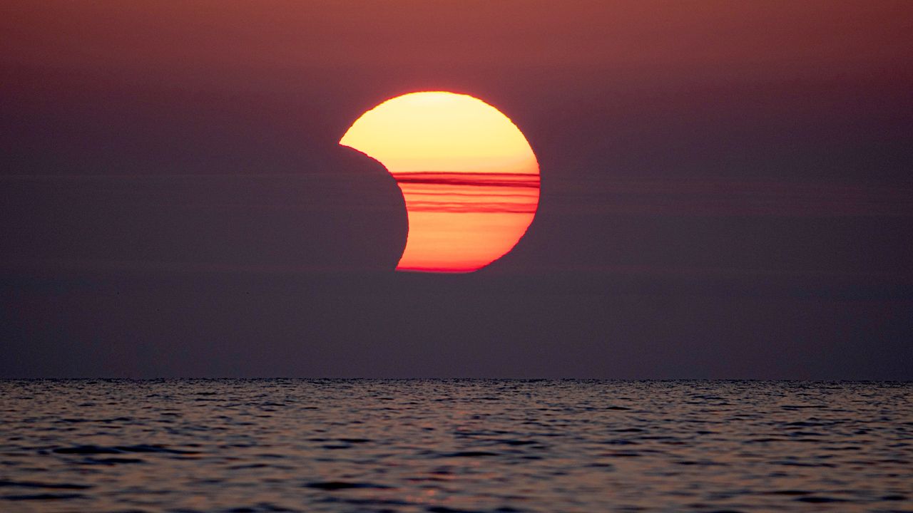 Un eclipse solar ocurre cuando la luna pasa directamente entre la Tierra y el Sol, lanzando una sombra a nuestro planeta. Durante un eclipse solar totalLa luna cubre completamente el sol y oscurece los cielos en el camino de la totalidad. Pero durante un eclipse parcial, la luna solo bloquea parte de la superficie solar. Como tal, el sol aparecerá como si se hubiera sacado una mordida.