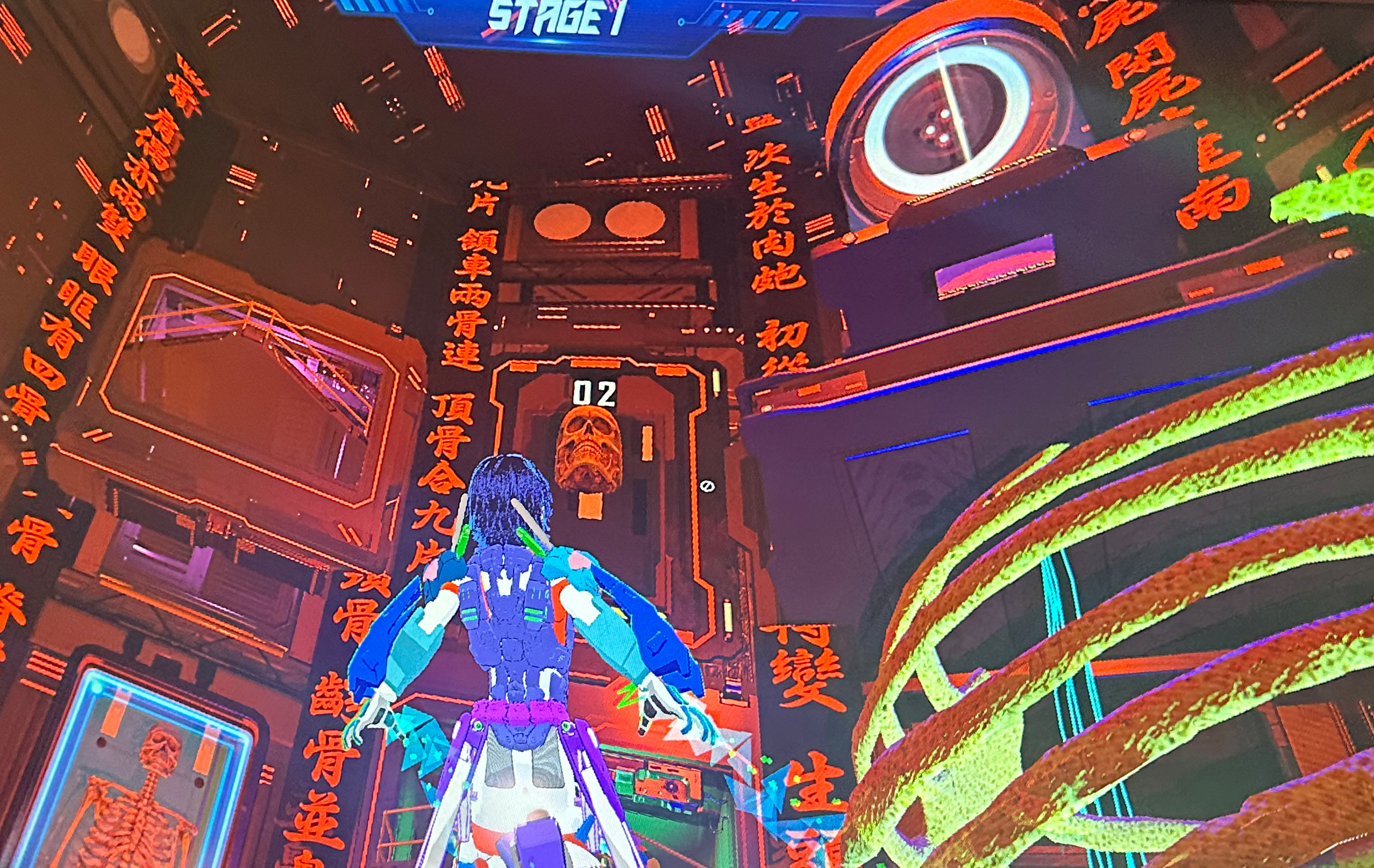 ¿Por qué un videojuego? Para Lu, el medio del juego, tan a menudo descartado como mero entretenimiento, se convierte en un vehículo para el despertar, traduciendo la filosofía budista a una forma digital. El mundo virtual, como lo describe el artista, es un “contenedor”, un recipiente temporal a través del cual fluye la conciencia. Dentro de este reino cambiante, la lógica del juego refleja la lógica del ser mismo: los interminables ciclos de desafío, fracaso y renovación del jugador resuenan. samsarael bucle kármico del nacimiento, la muerte y el renacimiento. Siguiendo al avatar del superhéroe Material World Knight, los espectadores participan en una práctica de apego y desapego, representando la conciencia misma en el corazón del sistema de pensamiento. A medida que los jugadores invierten emocionalmente en las misiones del avatar (solo para perder el progreso, morir y comenzar de nuevo), ensayan el ciclo de aferramiento y liberación que define la existencia misma. El avatar encarna un yo en perpetuo cambio, avanzando a través de nueve niveles que dramatizan la paradoja de luchar hacia la iluminación dentro de la ilusión.