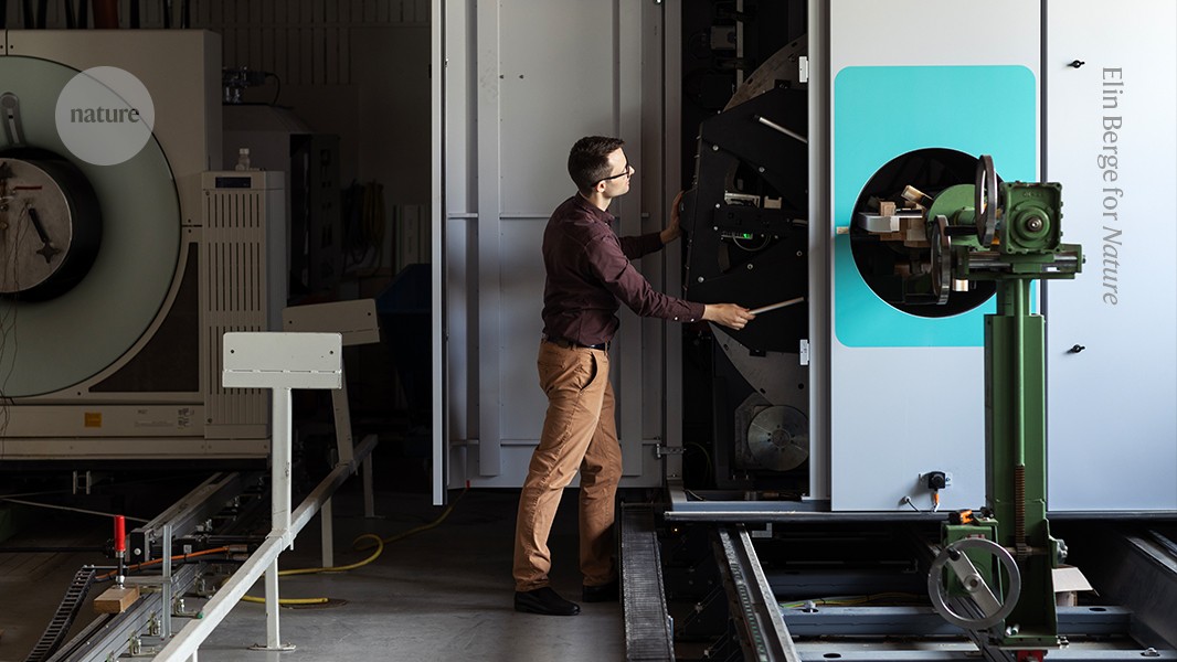 En nuestro laboratorio en Skellefteå, Suecia, uso una máquina que parece un escáner hospitalario. En realidad, es un Microtec Mito, una máquina CT industrial optimizada para registros, que tiene niveles de radiación mucho más altos que los escáneres hospitalarios. Este modelo se ha utilizado para escanear manzanas en la industria alimentaria, pero aún no se usa en aserraderos. Tiene un tubo de rayos X y un detector que gira alrededor de una estructura de anillo, dentro de la cual atacamos nuestras muestras. En lugar de escanear a un paciente (o una manzana), estamos escaneando troncos de seis metros de largo o pequeñas muestras de madera de solo unos pocos centímetros de tamaño. La resolución que estamos usando es de 0.3 milímetros en cubos; Es como ser cirujano.
