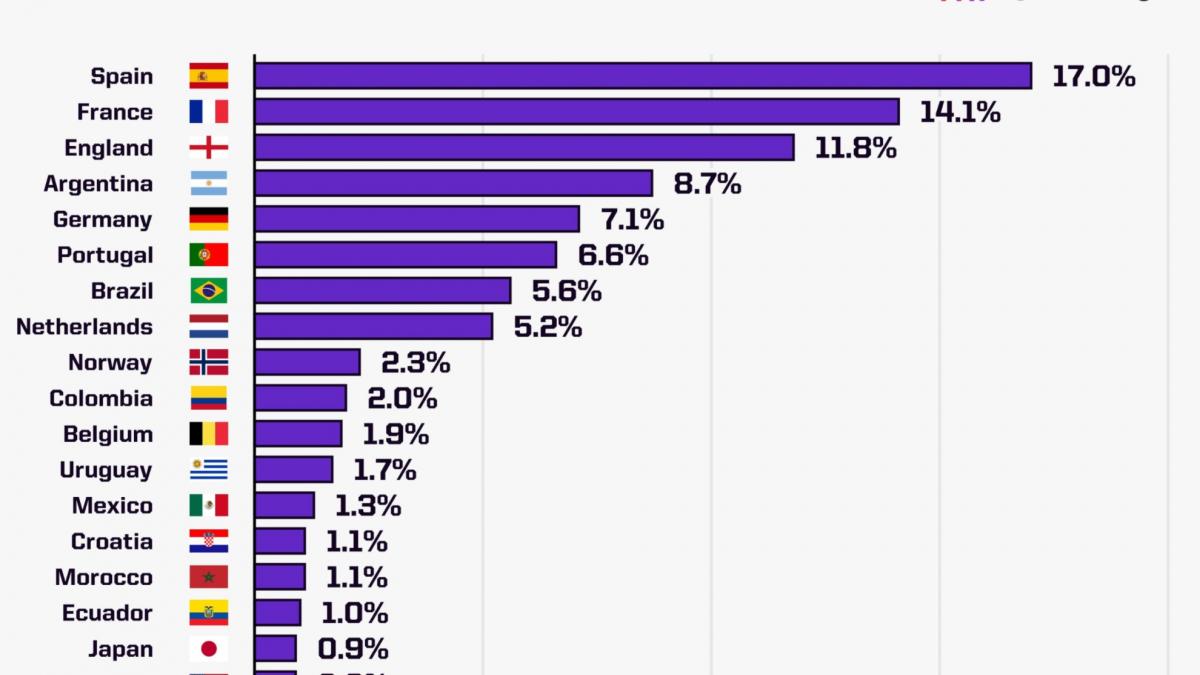 En una cita en la que se reunirán los mejores jugadores y se podrá disfrutar del fútbol mejor de seleccionesEspaña parte como favorita con una probabilidad del 17% para alzarse con el trofeo. Por detrás se sitúan otros combinados como francia mi inglaterraque completan el podio de mayores aspirantes al título.