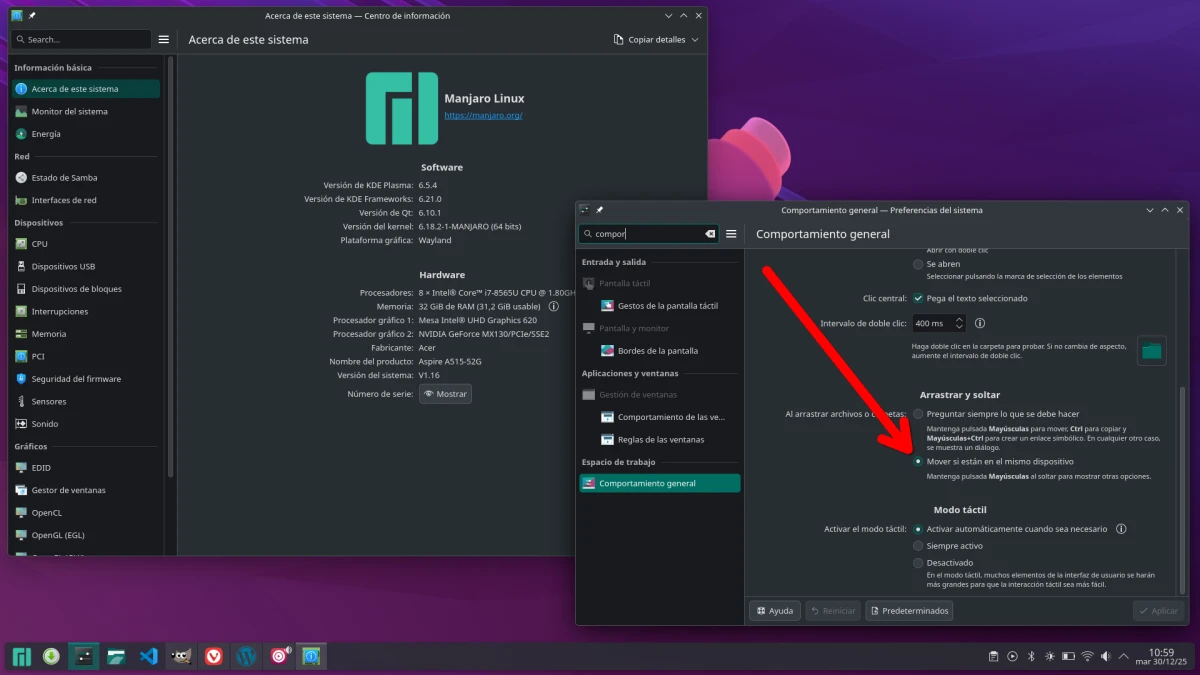 Hace ya más de seis años desde que soy usuario de KDE y Plasma. La primera vez que lo probé funcionaba muy mal en mi hardware, pero lo bueno me gustó mucho. Cuando volví, ya en Plasma 5.x, los problemas estaban solucionados, me quedé y me encanta. Aún así, que algo sea bueno no significa que no pueda ser mejor, y hay funciones que me gustarían que fueran diferentes. Una de ellas la mejoraron en Plasma 6.4disponible desde mediados de este 2025 que está a punto de finalizar, y es el comportamiento de arrastrar y soltar.