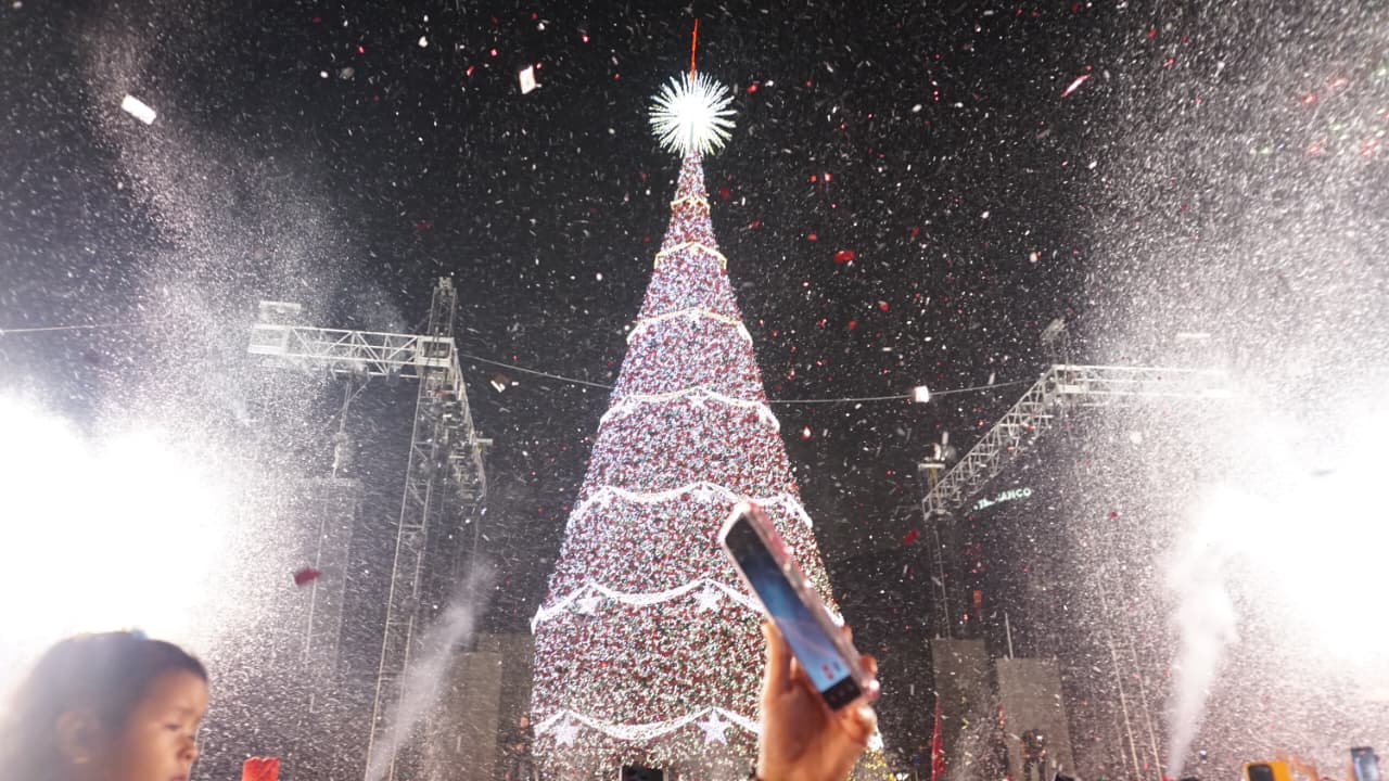 Y también el Árbol Gallo fue ganando tamaño, el de este año mide 45 metros de altura y cuenta con más de un millón de luces.