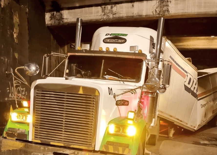 La Policía Municipal de Tránsito (PMT) informó que este martes 21 de octubre un furgón se partió al pasar por el viaducto El Amate, en la 5.a avenida y 19 calle, zona 1, donde el paso estuvo interrumpido.
