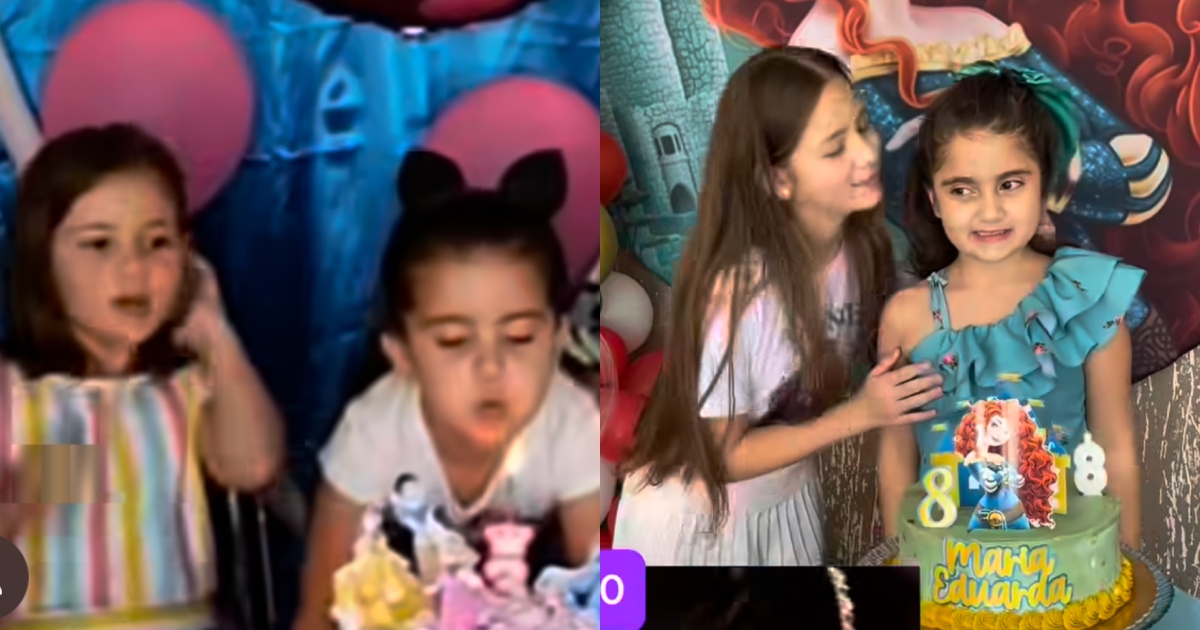 El video ocurrió en Brasil, en el cumpleaños 3 de María Eduarda, la menor de las niñas, pues mientras todos le cantan las mañanitas y ella, esperaba su momento de apagar la velita del pastel, su hermana mayor, María Antonia, dijo “pues no mi ciela” y sopló la vela, lo que provocó que la hermanita se la agarrara del chongo y hoy, 5 años después, recrearon el momento.