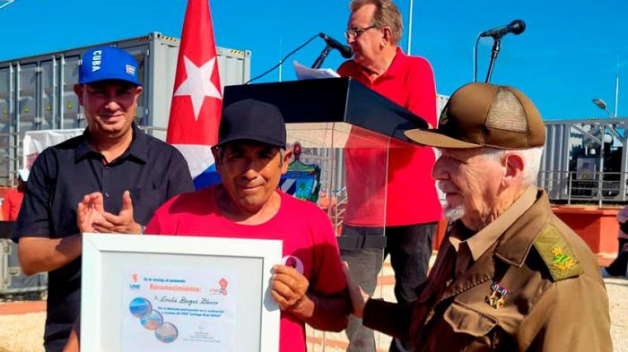 Valdés Menéndez, Junto a Vicente de la o Levy, Ministro de Energía y Minas, Entregaron Reconocimientos A obreros y entidades Destacadas en la Construcción de Este Parque, El Tercero en Ciume de Ávila, Con CapaciDad de 21,87 MW.