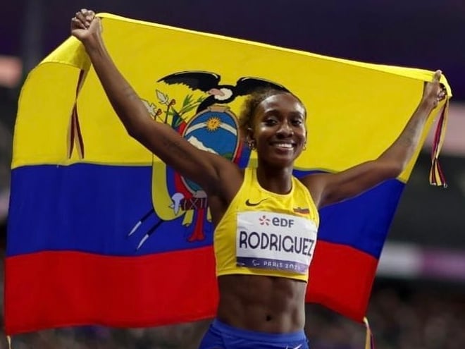 La Deportista Ecuatoriana Kiara Rodríguez Brilla A Nivel Internacional Y es tricampeona Mundial en los 100 Metro Planos T46/47, Al Conquistar la Medalla de Oro en El Campeonato Mundial de Paratletismo que se realiza en Nueva Delhi, India.