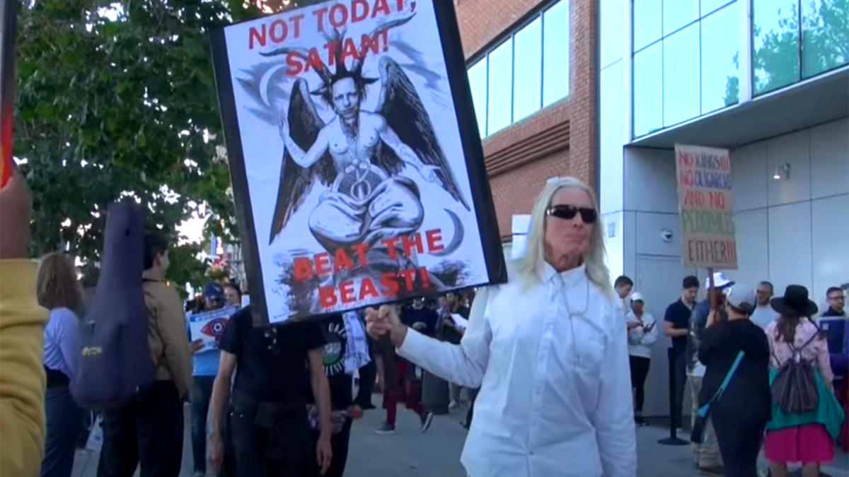 Para el público, es desconocido, lo que dijo exactamente Thiel sobre su «fe cristiana» y el principal antagonista de Cristo durante el seminario secreto del lunes por la noche, pero había muchas personas fuera del lugar que estaban más que felices de compartir públicamente sus pensamientos sobre Thiel. Es decir, un grupo de varias docenas de manifestantes se presentó al evento centrado en el demonio y ofreció amplias críticas al orador, que parecía implicar que él era él mismo demoníaco.