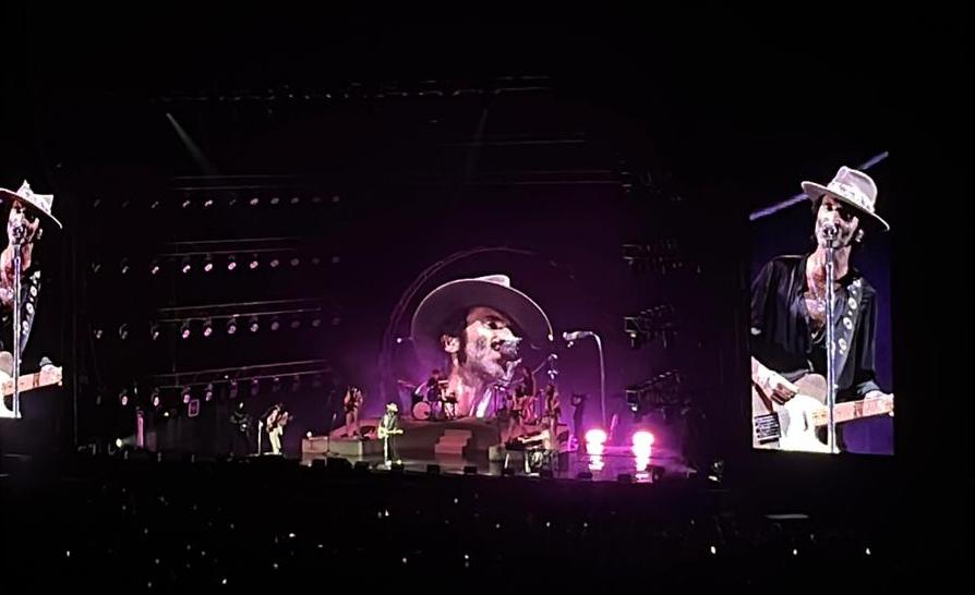 Pocos minutos pasan de las 9 de la noche cuando el madrileño Leiva aparece en escena, vestido con sombrero de ala ancha, camisa negra desabotonada, botines blancos, mirada torva, sonrisa ladeada— como un forastero que llega a su propio sueño, junto a su inseparable banda mientras suenan los primeros compases del tema “Bajo presión” y como dice la canción, Leiva está en su mejor momento de largo y sí, puede decirlo bien alto.