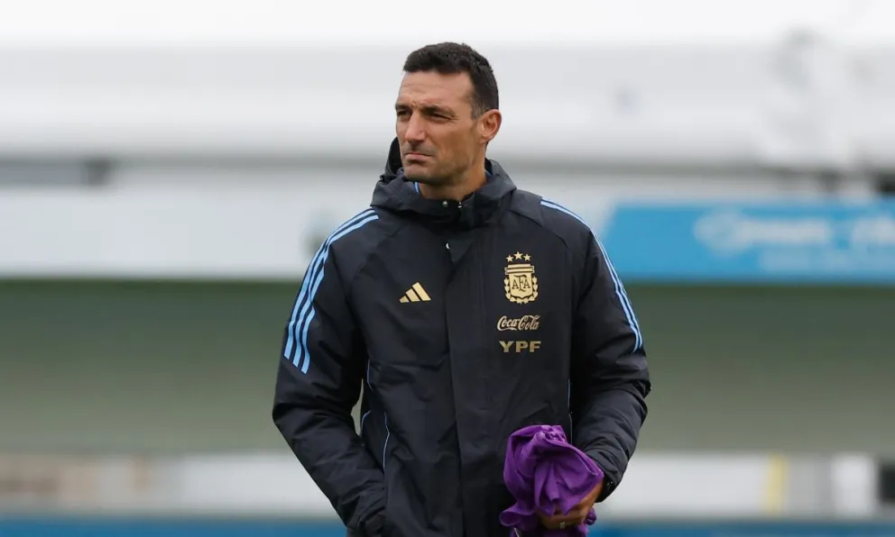 Scaloni Durante el Abrenamiento de Argentina. Foto: Efe.