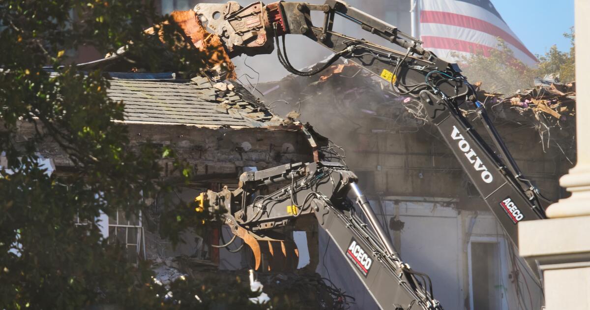 WASHINGTON— La construcción del salón de baile de 250 millones de dólares que el presidente Trump está agregando a la Casa Blanca comenzó esta semana mientras los equipos de construcción comenzaron a derribar la fachada del ala este, donde se está construyendo el nuevo espacio.