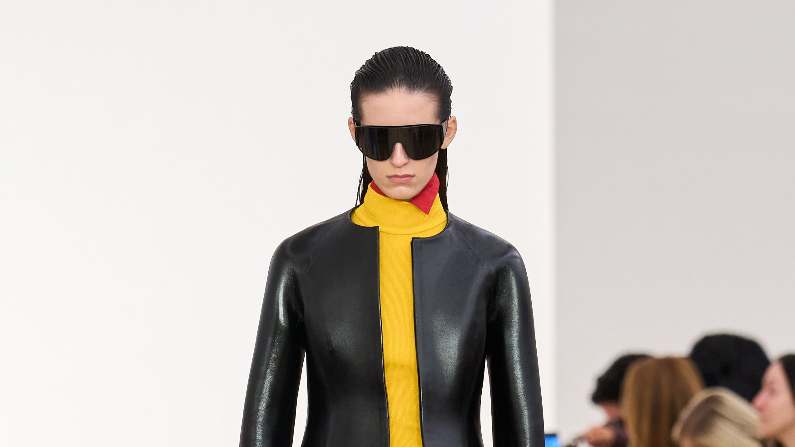 Sus colores soleados estaban bien representados en una colección que abarcaba chaquetas de cuero selladas con calor brillante esculpidas como campanas y vestidos de bufanda múltiples con drapeados, sus armarios de costura crean una cascada de volantes. Estos se mostraron junto con los arquetipos de ropa deportiva (jeans, botones, camisetas y rompientes de viento, «retorcidos», como dijo McCollough, «a través del filtro de alta nave». Los jeans, por ejemplo? Cuero rallado. Los botones: cuero también, diseñado a mano y pintado con aerosol. Y los tanques y las camisetas: el «hilo» de cuero se disparó con alambre para crear sus formas arrugadas. Otros experimentos fueron más de alta tecnología, como los vestidos de toalla hechos de «tela» impresa en 3-D con la pila de terciopelo y el viento de lo que describieron como un Gore-Tex de seda de primer tipo de su tipo.