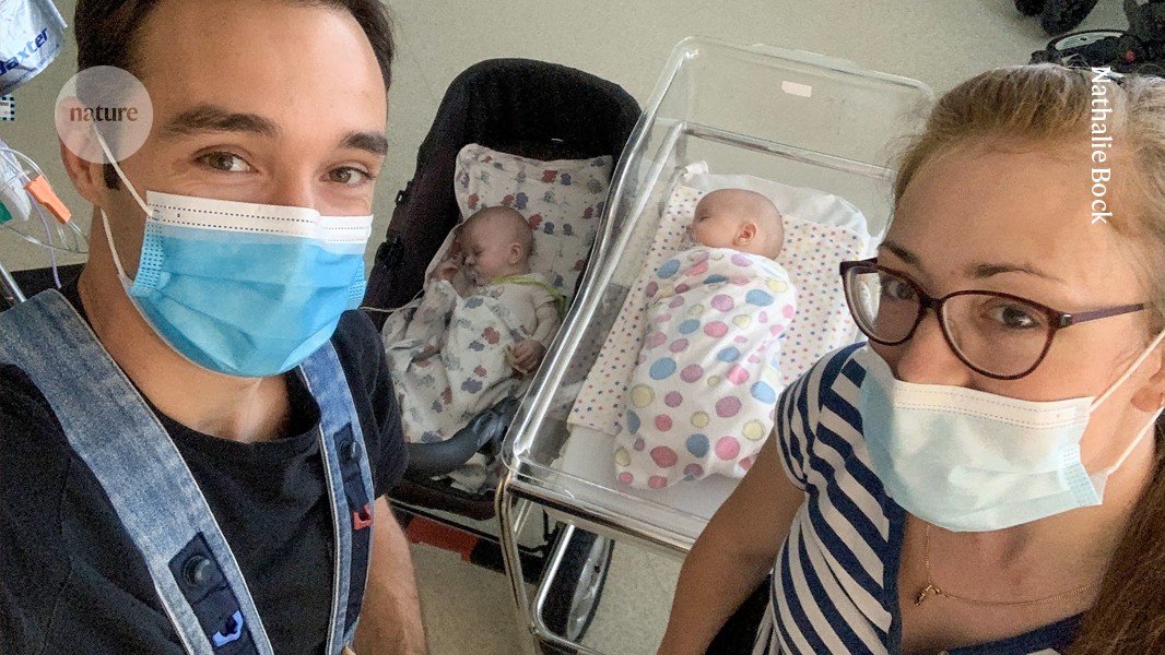 Nathalie Bock y su pareja compaginaron el cuidado de los niños, las visitas al hospital y los compromisos laborales después del nacimiento de sus hijos gemelos. Crédito: Nathalie Bock