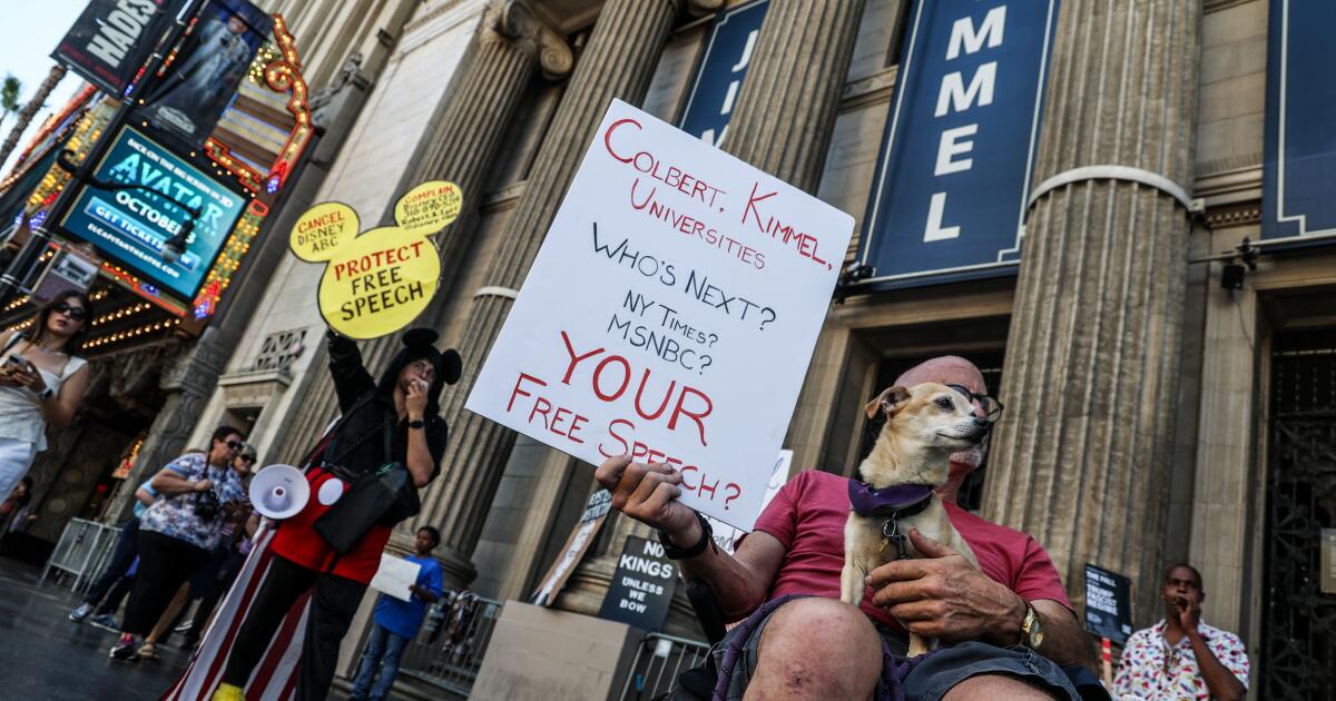 «Los artistas ya están muy preocupados por nuestro ecosistema de medios consolidado. Un pequeño número de control de guardianes que controlan lo que los estadounidenses miran en la televisión, y estos conglomerados ahora están siendo obligados a censurarnos a todos por una administración que exige la presentación y la obediencia de lo que debería ser un escritor gratuito e independiente», dijo el escritor de Television de Television de los Ayuntamientos, durante el stiehm de la televisión de Kimmy, que es el stiehm de la televisión de los Estados Unidos. El Teatro El Capitán la semana pasada.