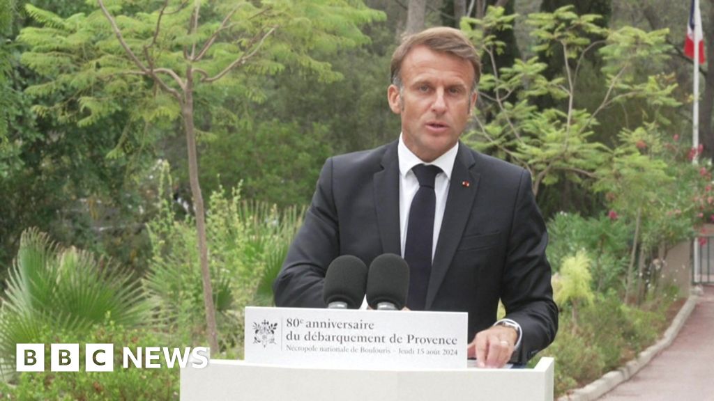 Getty Images El presidente Emmanuel Macron habla en el 80º aniversario del desembarco de Provenza en Boulouris-sur-Mer, sureste de Francia.Imágenes Getty