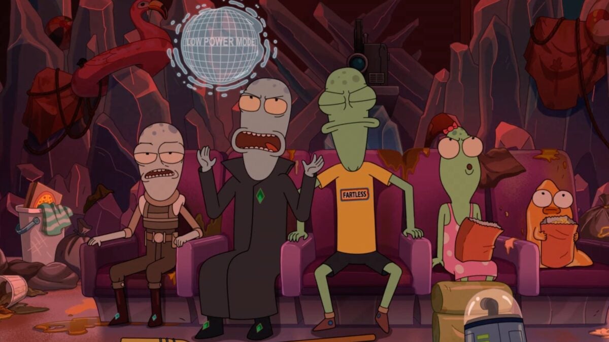 Como resulta muy obvio, nuestros queridos Shlorpianos prácticamente han abandonado por completo la misión que los trajo a la Tierra. En cambio, se lo están pasando genial en su “sala de cine” viendo un juego de palabras. Rápido y Furioso spin-off que solo Opuestos solares podría soñar.