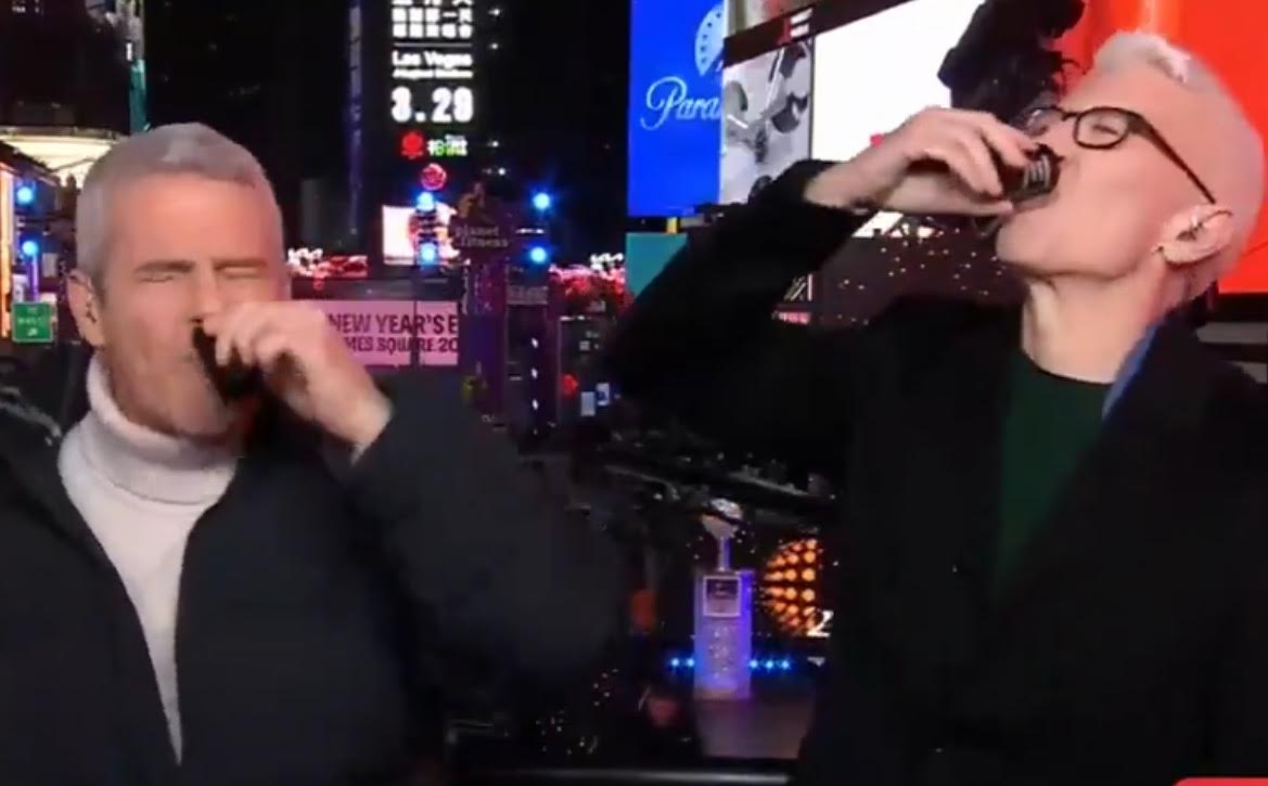Los presentadores de CNN Anderson Cooper y Andy Cohen bebieron tragos de tequila el martes por la noche mientras presentaban el programa de Nochevieja de la cadena en Times Square en la ciudad de Nueva York.
