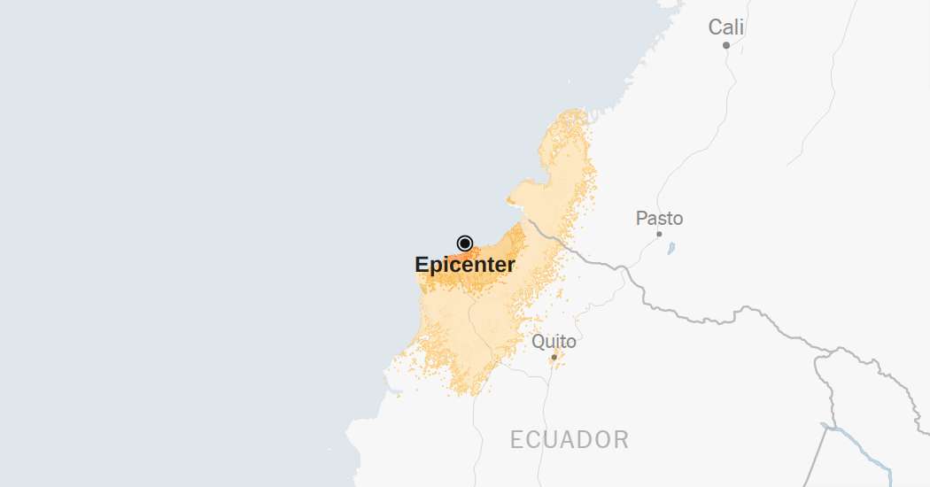 Fuente: Servicio Geológico de los Estados Unidos | Notas: las categorías de sacudidas se basan en el Intensidad Mercalli modificada escala. Cuando los datos de la réplica están disponibles, los mapas y gráficos correspondientes incluyen terremotos dentro de 100 millas y siete días del terremoto inicial. Todos los tiempos anteriores son el tiempo de Ecuador. Shake Data es a partir del viernes 25 de abril a las 7:01 AM Ecuador Hora. Los datos de Aftershocks son a partir del viernes 25 de abril a las 12:46 PM Hora de Ecuador.