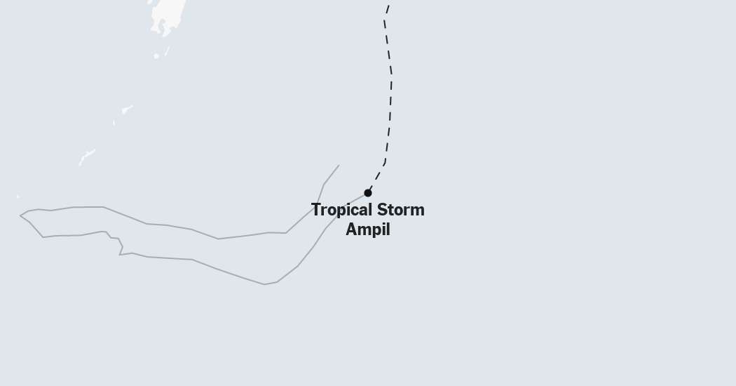 Ampil era una tormenta tropical en el mar de Filipinas la madrugada del miércoles, hora de Japón, dijo el Centro Conjunto de Alerta de Tifones en su último informe. consultivo.