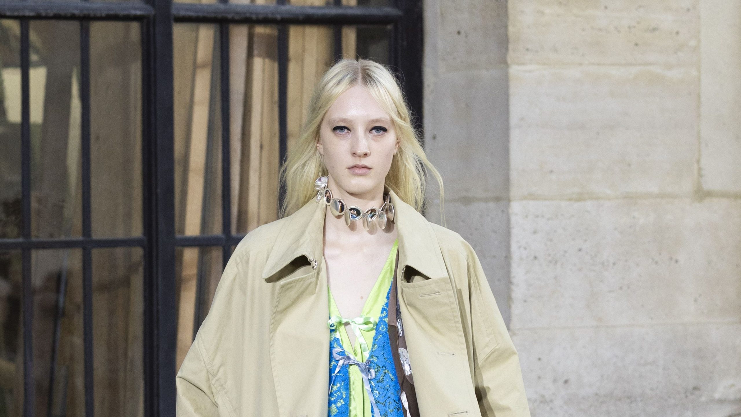 Ese impulso tocó todo. Cambió el orden habitual de un desfile de día a noche a favor de un enfoque de todo, todo funciona. Rogge abrió con una combinación de tocador de color lima ácido y una bata de encaje de martín pescador en capas debajo de una holgada gabardina beige, mezclando alegremente la practicidad del día con el glamour de la noche, antes de adornar la frase más famosa de Mueller sobre no ser salvaje, sino salvaje encontrarla (estoy parafraseando aquí) sobre un vestido de satén de colores vivos con una impresión fotográfica de un cielo azul abrasador en un lado y en el reverso. cuero jodido, adornado con un lazo, o más tarde, presentando un vestido de novia, tradicionalmente el look de cierre en un desfile de la vieja escuela de París, aproximadamente dos tercios del camino a través de la alineación. «El hecho de que estés casado no significa que la vida se detenga», dijo Rogge, que era el objetivo de ese orden de ejecución. Observé los looks restantes del desfile, todos vestidos cortos y con vuelo, una de las historias más importantes de la temporada, algunos de ellos usados ​​con la elegante punketerie de las gargantillas plateadas gráficas y los collares de adornos de los joyeros belgas Wouters & Hendrix en colaboración con Rogge. «Ciertamente parece que todavía se está divirtiendo», le dije a Rogge. «Tal vez eligió el poliamor después de casarse».